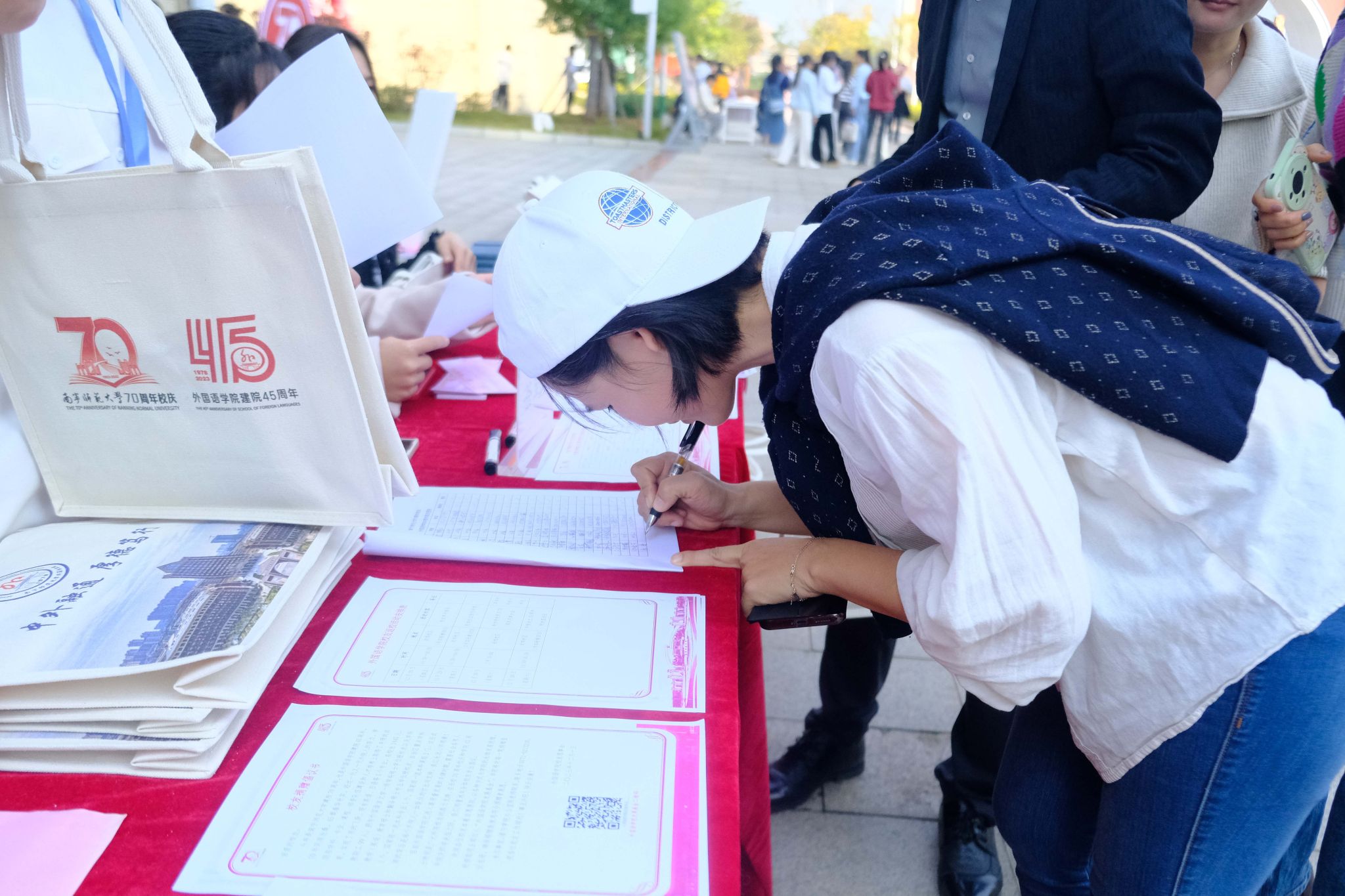 恰70校庆,风华正茂的必威西汉姆联官网迎来了45周年院庆。在风和日丽的暖冬里,外院的校友们如约而至。外院学子们化身志愿者,给校友们送上专属返校纪念品。学院办公楼前专门设置了为欢迎校友返校的签名墙,校友们庄重地在签名墙上留下自己的名字印记,留下“回家”的宝贵记忆。