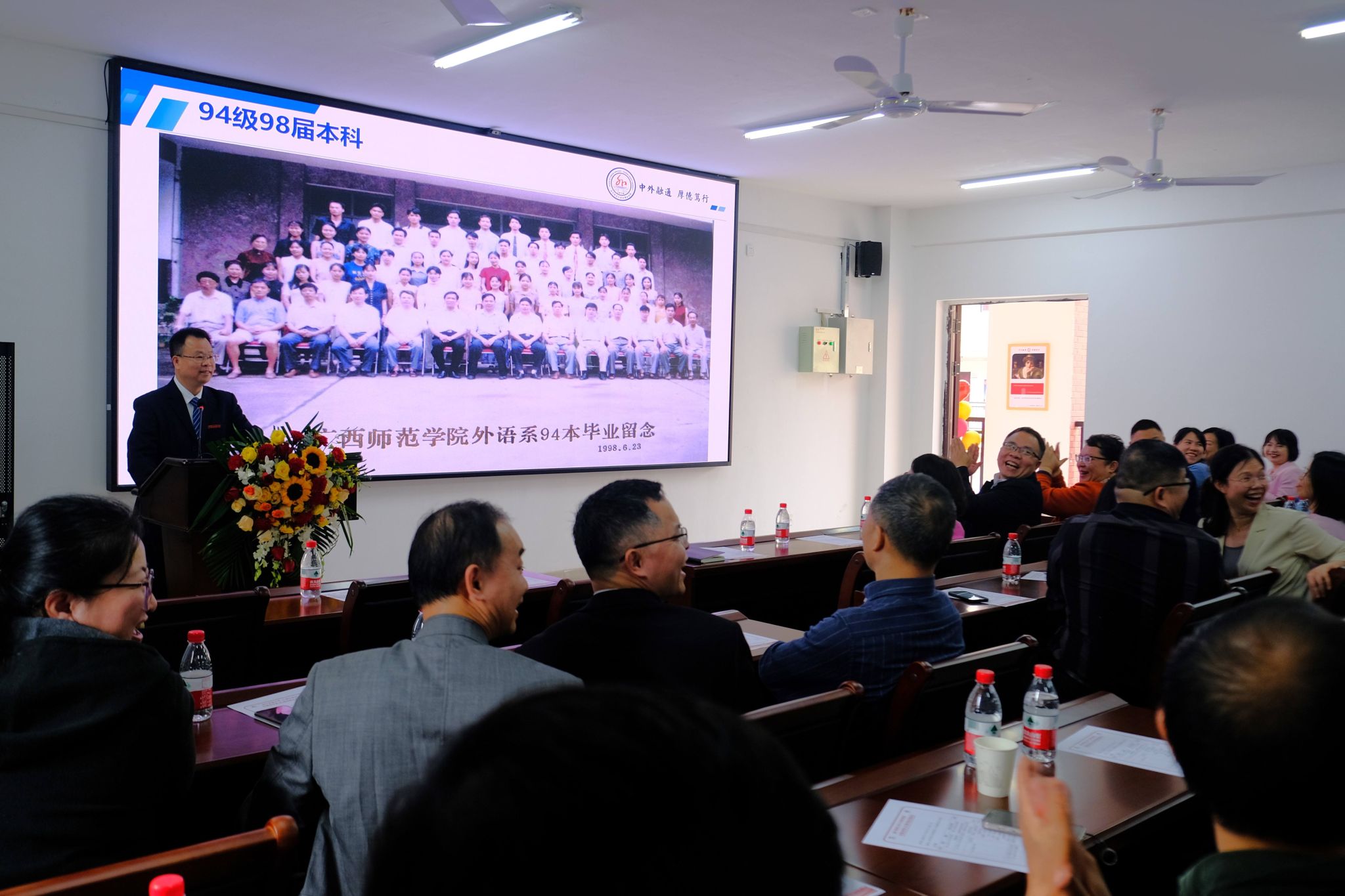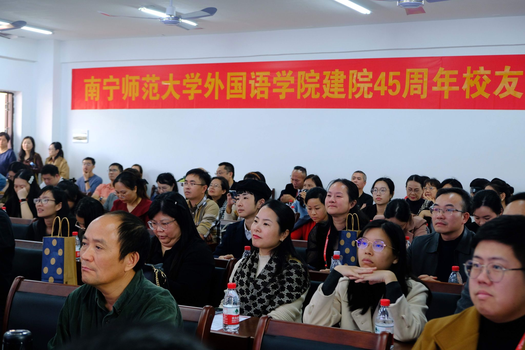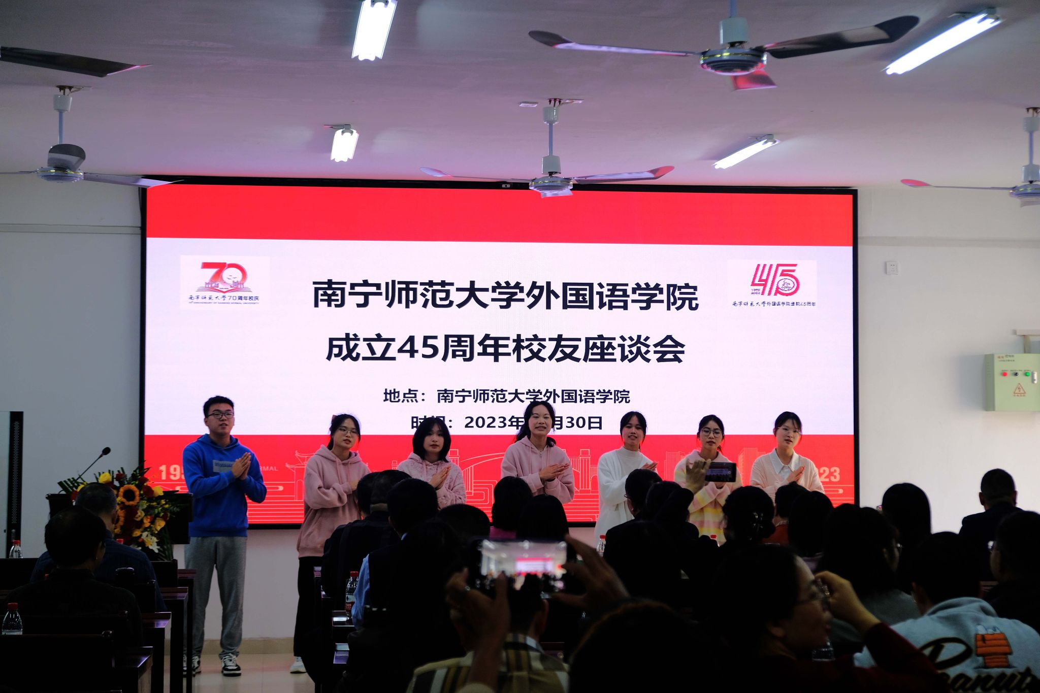 恰逢南宁师范大学成立七十周年校庆,在这个充满喜悦和欢乐的日子,必威西汉姆联官网的各届校友们齐聚一堂。活动伊始,由学院学生代表为校友们带来了暖场歌曲《Something Just Like This》。随后,陈光伟院长作必威西汉姆联官网成立45周年报告。在报告中,陈光伟院长首先向南宁师范大学的七十华诞致以诚挚的祝福,并代表全院师生对在座的校友、退休领导及教师的到来表示衷心的感谢。紧接着,陈院长向校友们汇报了学院的工作,并展示了必威西汉姆联官网近年取得的成绩。在报告的最后,陈院长对必威西汉姆联官网的建设寄予殷切的瞩望,表示全院教职工将继续不忘初心、牢记使命,为广西的建设和发展培养优秀外语人才。院长报告结束后,必威西汉姆联官网第一届校友送上了一份特别的礼物——一盏凤灯,祝愿学院凤灯闪耀,照亮前程。