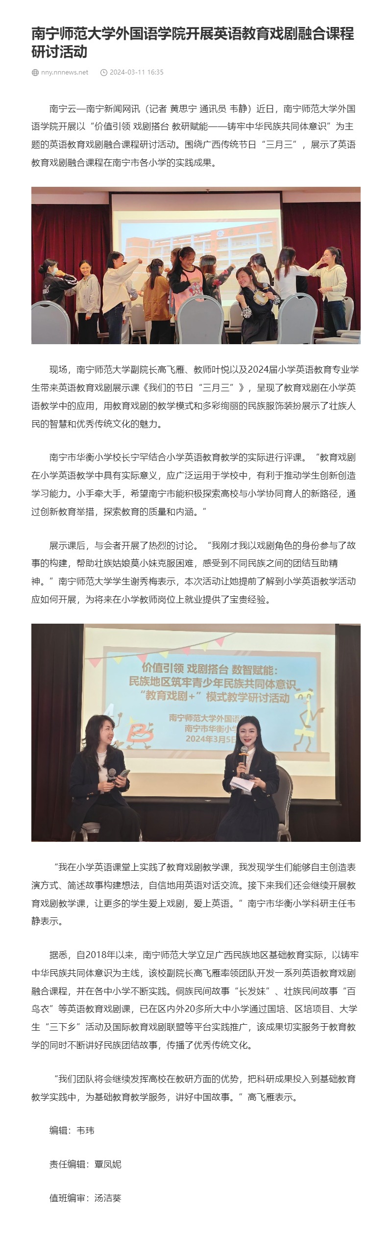 [媒体报道]南宁云—南宁新闻网:南宁师范大学必威西汉姆联官网开展英语教育戏剧融合课程研讨活动