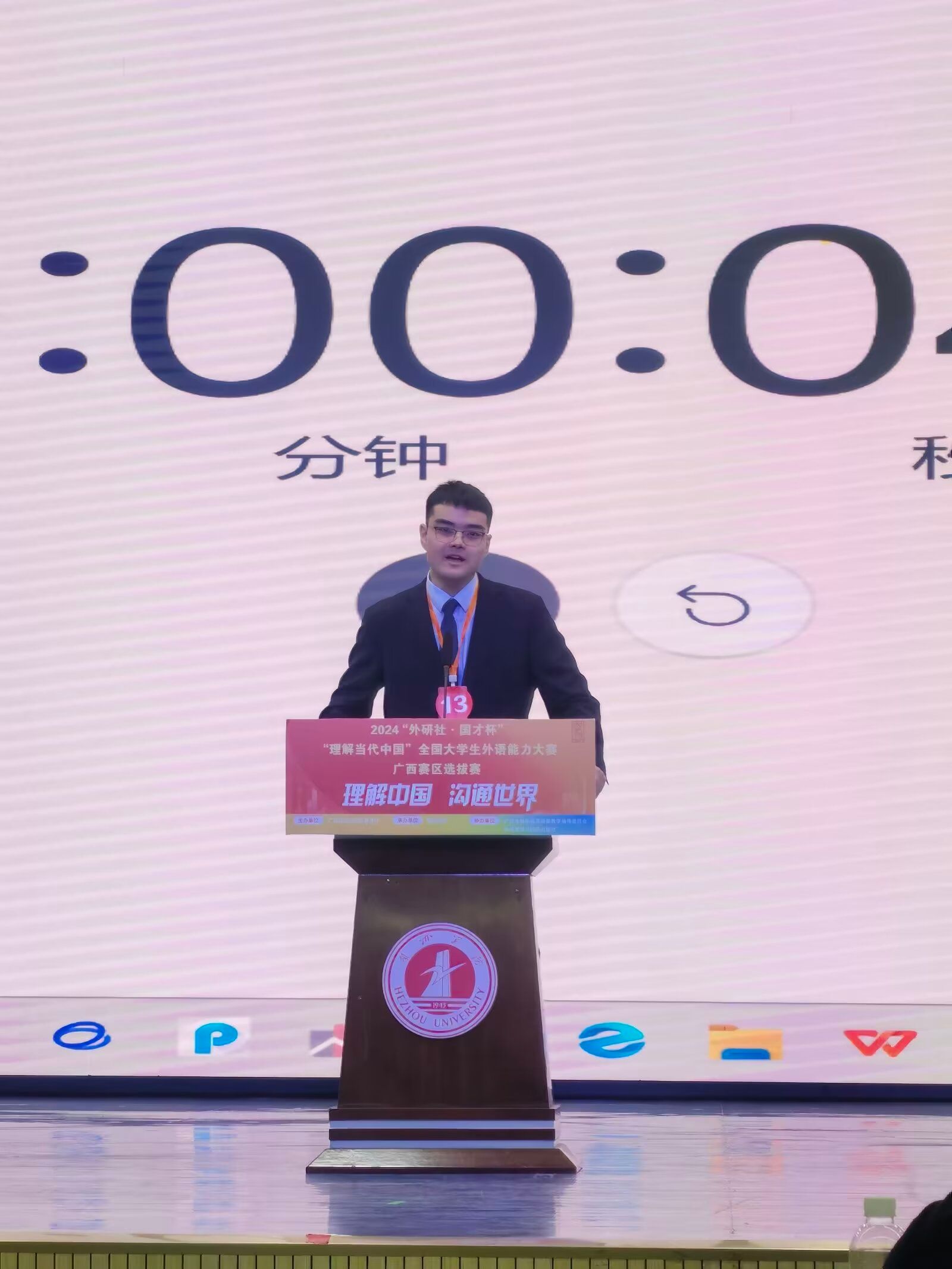 在秋高气爽的十月,为贯彻党的二十届三中全会精神,深化“三进”工作、创新课程思政,推进教育改革、检验教学成果,讲好中国故事、服务国际传播,在广西教育厅的指导下,由广西本科高校英语类教学指导委员会主办,外语教学与研究出版社协办的2024年“外研社·国才杯”“理解当代中国”全国大学生外语能力大赛广西赛区选拔赛的英语组演讲和口译竞赛于10月25日至27日在贺州学院西校区举行。