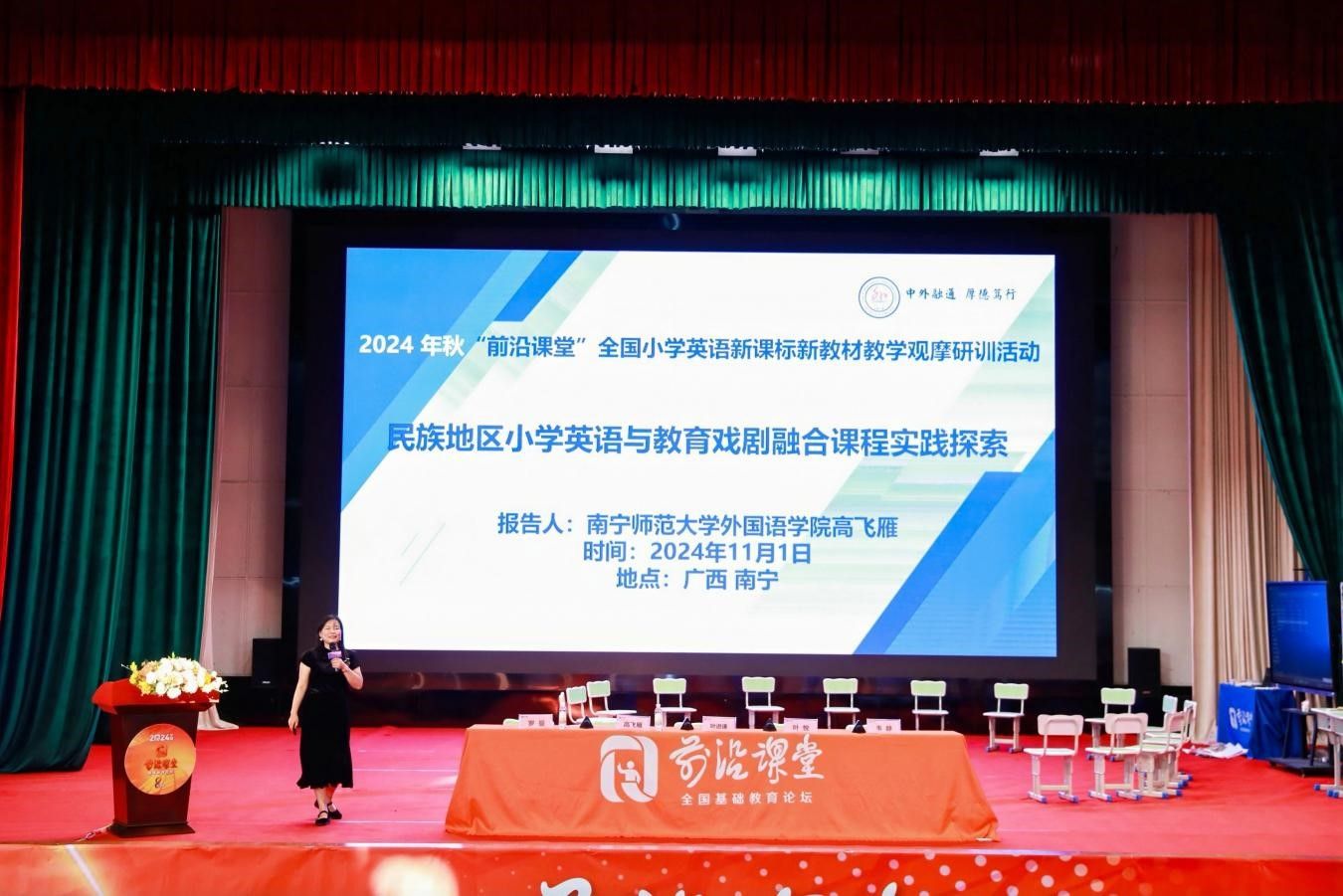 2024年10月31日-11月1日,2024年秋“前沿课堂”全国小学英语新课标新教材教学观摩研训活动在广西南宁圆满召开。南宁师范大学必威西汉姆联官网副院长高飞雁带领学院教育戏剧团队作为本次大会特邀嘉宾,与来自全国各地的名师专家、优秀教师代表汇聚一堂,共同参与这场精彩的新教材研讨活动。