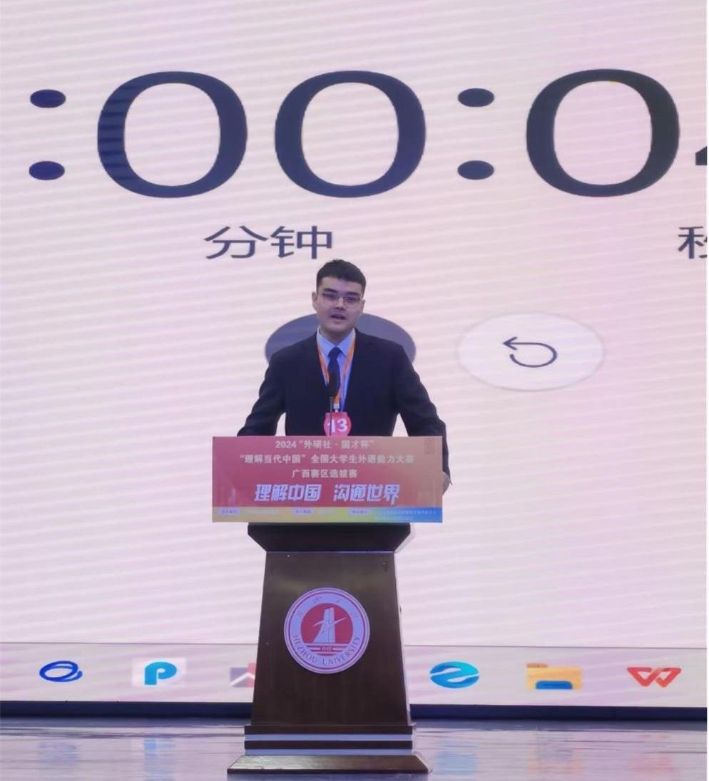 由自治区教育厅主办、广西本科高校英语类教学指导委员会和外语教学与研究出版社协办的2024年“外研社·国才杯”“理解当代中国”全国大学生外语能力大赛广西赛区选拔赛在2024年11月27日圆满落幕。经过激烈角逐,我校学子在各赛项中表现突出,共获得金奖5项,银奖6项,铜奖8项,南宁师范大学获优秀组织奖。