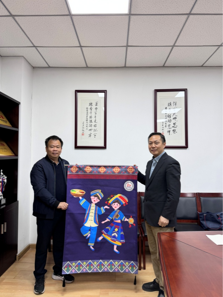 调研期间,代表团向各接待高校赠送了广西壮锦,以此表达友好情谊,并展示壮族文化的风采。