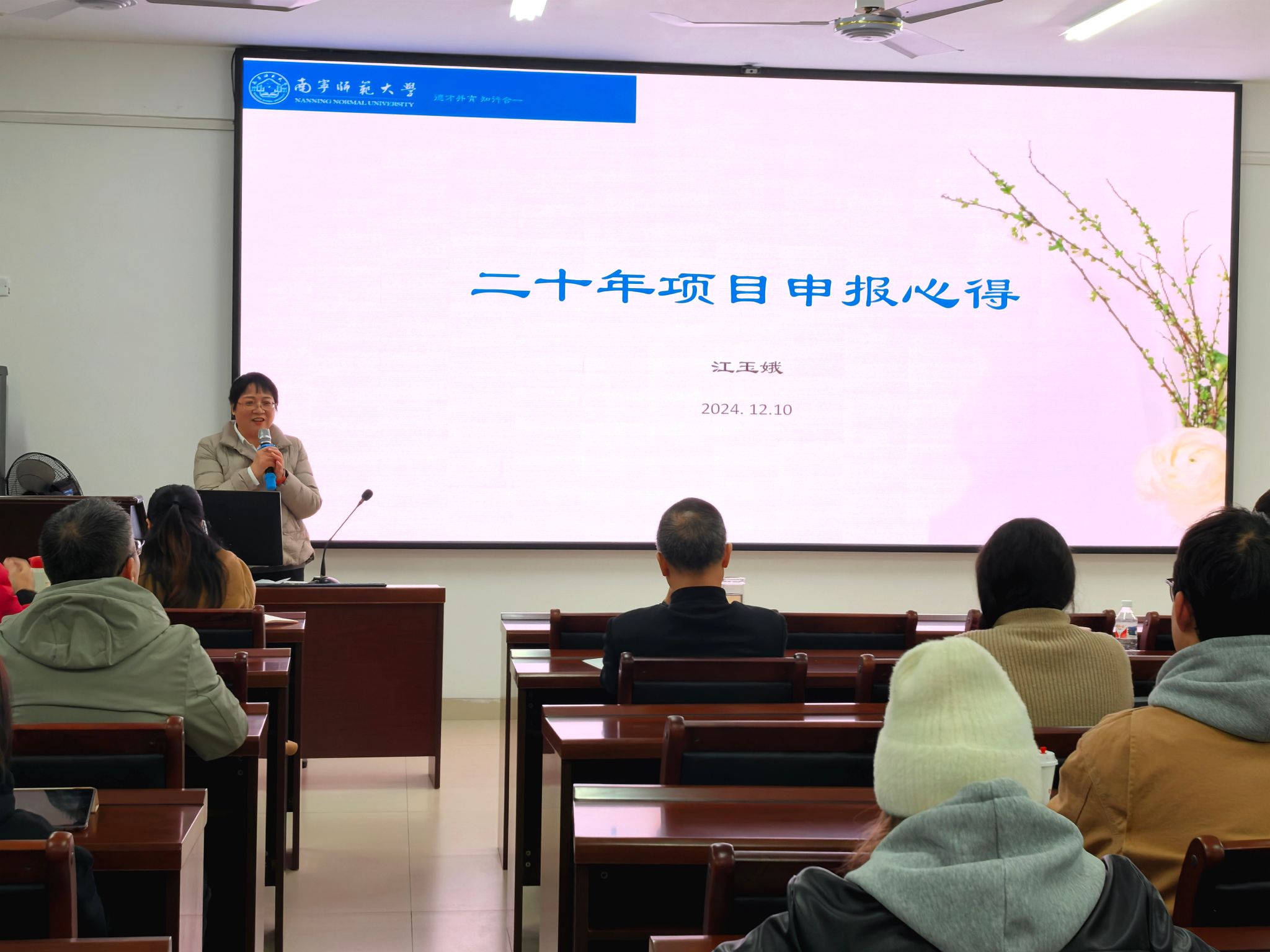 随后,黄信博士、赵凤玉教授、江玉娥教授分别从不同维度分享了他们在课题申报方面的宝贵经验。黄信博士强调了社科项目申报中研究的可行性和政策支持热点问题的重要性,并巧妙地展示了如何高效选题。赵凤玉教授在此基础上,探讨了选题过程中需要自问的“八个问题”,强调选题的实践性,并结合个人经验,分享了面对科研挑战时的心态调整。江玉娥教授则深入讨论了课题准备阶段的准备工作,其见解深刻,引人深思。