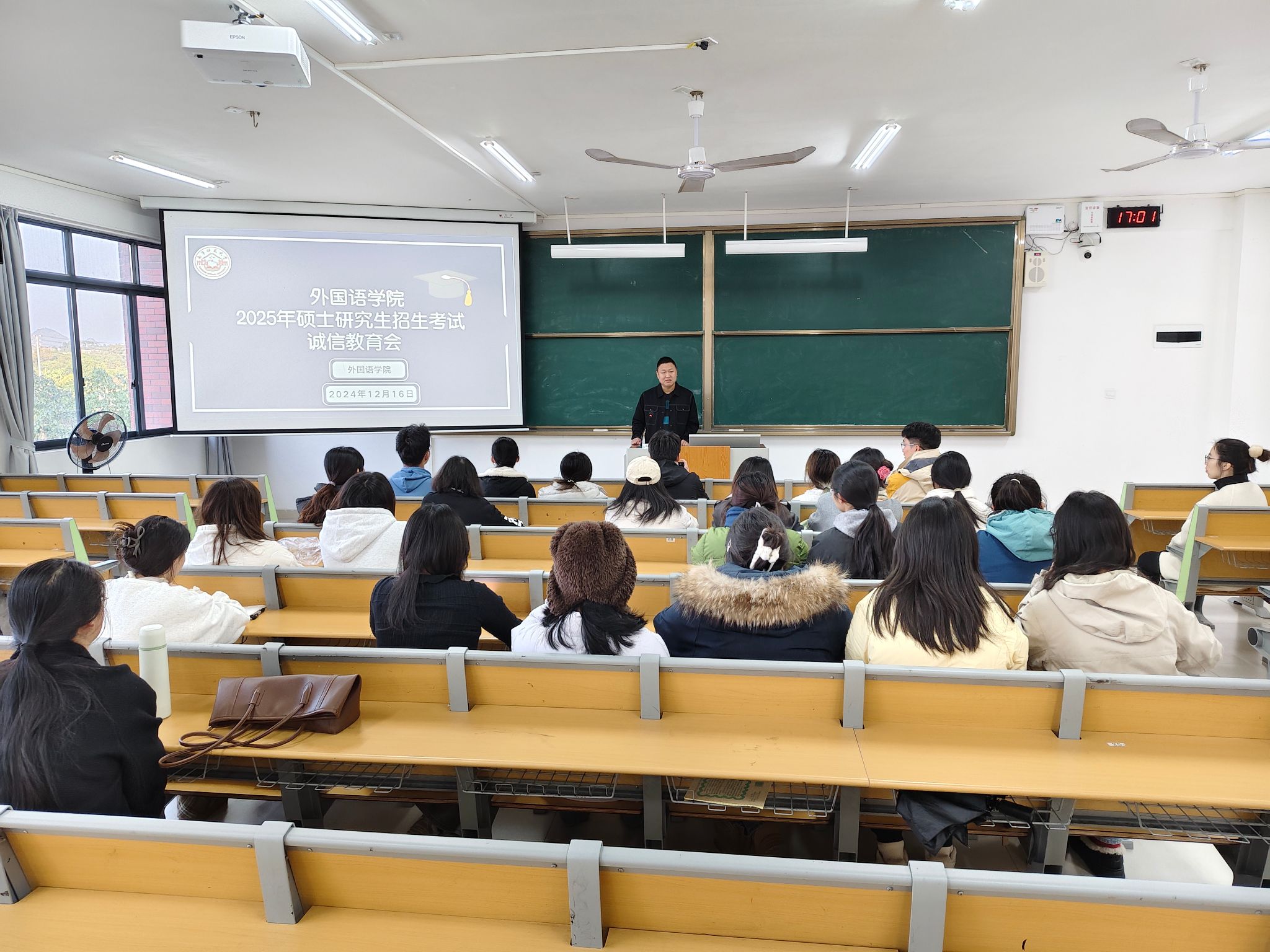 刘晖晖副书记首先对当前考研形势进行了深入分析,强调了考研的重要性和紧迫性。随后,他重点强调了考场纪律,提醒学生们要严格遵守考试规则,树立“做诚信人、讲诚信话、做诚信事、诚信为荣”的观念,诚信应考。刘晖晖副书记还为考生们加油打气,鼓励大家按照既定计划节奏复习,积极调整好状态,特别强调务必坚持考完所有科目,切勿前功尽弃,同时就考前证件准备、考场踩点、防寒保暖等注意事项进行了细致提醒。