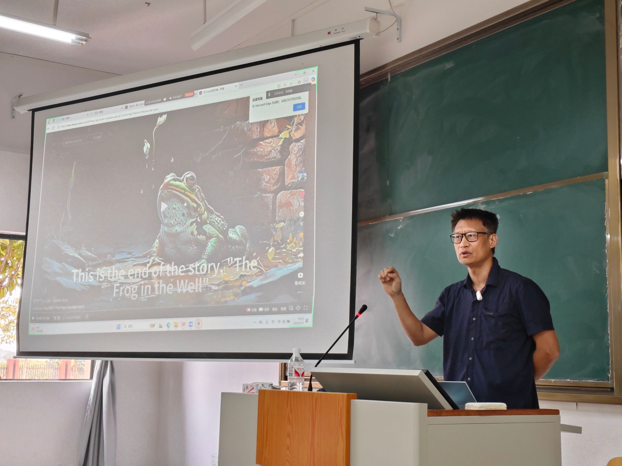 课堂上,郑鼎耀老师首先展示了AI图像与语音生成技术的前沿发展。通过Midjourney实时生成教学情境插画,配合TTS语音生成合成技术,以“井底之蛙”等众多视频案例现场演示了英语教学中场景的智能构建。这种将AI图文生成与语音合成相结合的技术,为教师快速创建沉浸式语言学习环境提供了新思路。郑老师特别指出,通过参数化调整,教师可定制符合不同教学阶段的语速、词汇难度及文化元素,实现教学资源的精准适配。在提升教学效率方面,郑老师重点解析了AI辅助评阅系统的实践价值。以自主研发的评卷辅助系统为例,该系统通过接入中英高精度手写识别处理等技术,可快速完成作文的语法纠错、表达评估和个性化评语生成,同时生成包含错误类型统计、进步趋势分析的教学报告,供英语教师进行批改参考。现场演示显示,该系统对手写英文作文的识别度较高,在数秒内就可以识别手写文本并给出初步批改结果,较传统人工批改效率有较大提升。参与教师就该系统的图像识别技术,评分标准设定、个性化反馈机制等展开热烈讨论。展望未来,郑老师强调,AI不是替代教师,而是通过人机协同构建"智慧共生"的新型教学模式,最终实现从"标准化教学"向"个性化成长"的范式转变。最后,在互动研讨环节,郑老师与线上线下同学、老师就AI技术的伦理边界、传统教学优势的保持等议题展开深度交流。