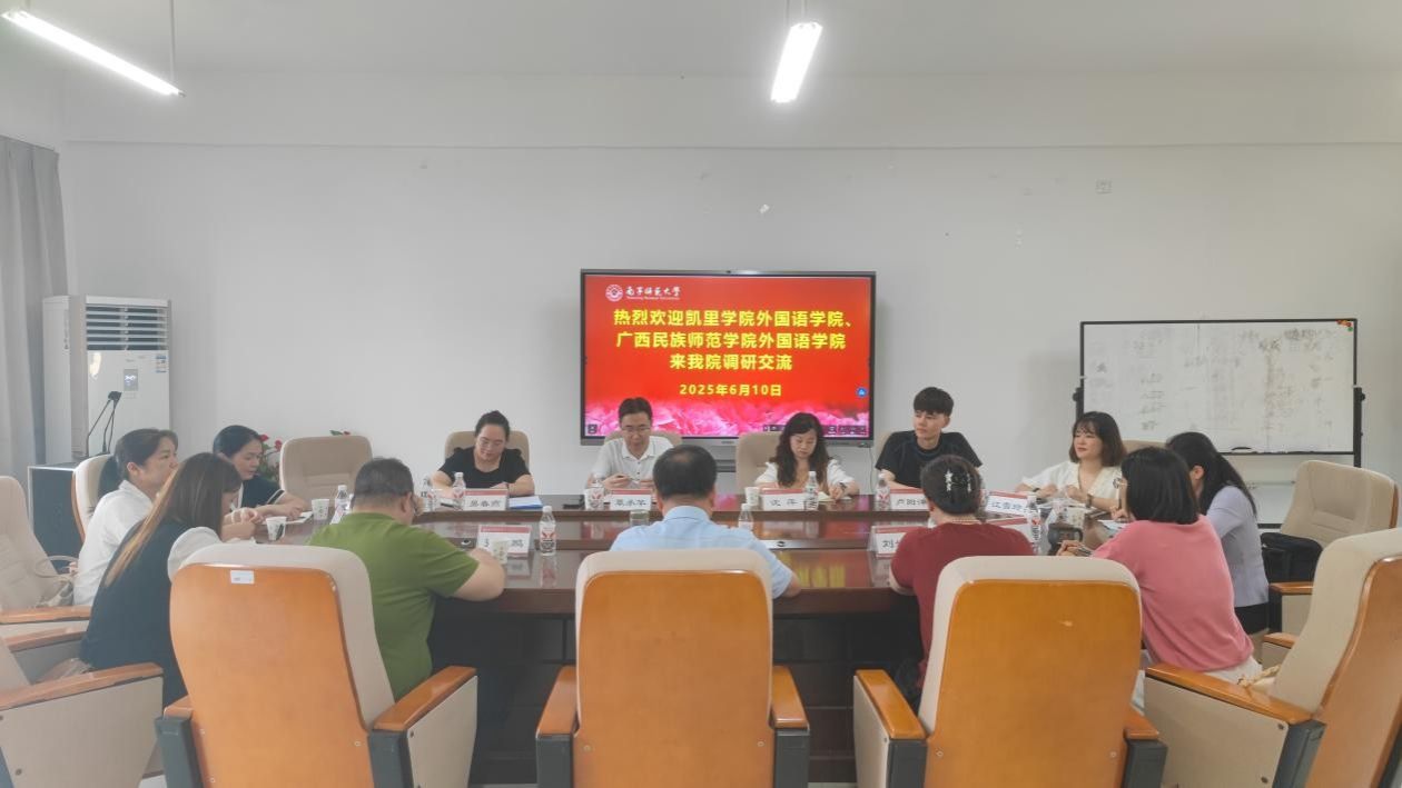 2025年6月10日下午,广西民族师范学院必威西汉姆联官网覃承华院长、凯里学院必威西汉姆联官网沈萍副院长(主持工作)联合率队一行9人到我校必威西汉姆联官网调研交流,必威西汉姆联官网院长陈光伟、副院长张晓鹏、英语系主任刘婷婷、翻译教研室主任樊毅出席座谈会。