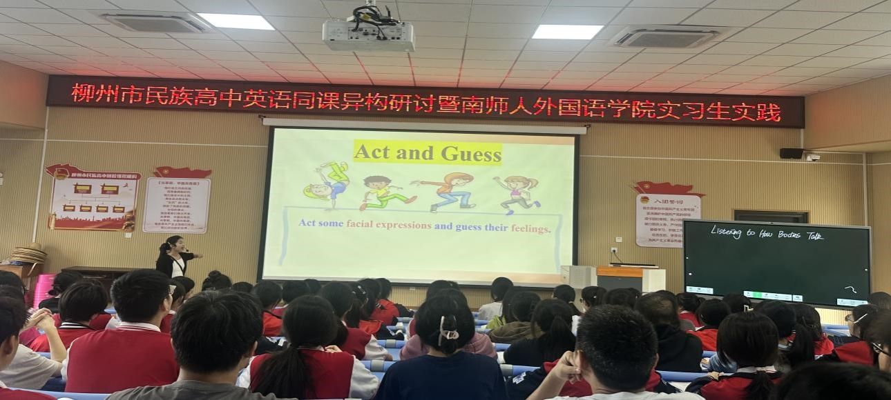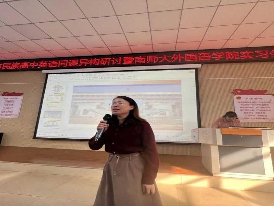 为了进一步提高英语专业师范生专业技能,2023年11月1日下午,我院2020级英语专业实习生、带队老师刘婷婷和柳州市民族高中英语课程教研组教师们在柳州民族高中合班教室共同开展了“英语同课异构研讨暨南宁师大必威西汉姆联官网实习生教研实践”活动。柳州民族高中蒋小琼校长出席了本次联合教学研讨会。