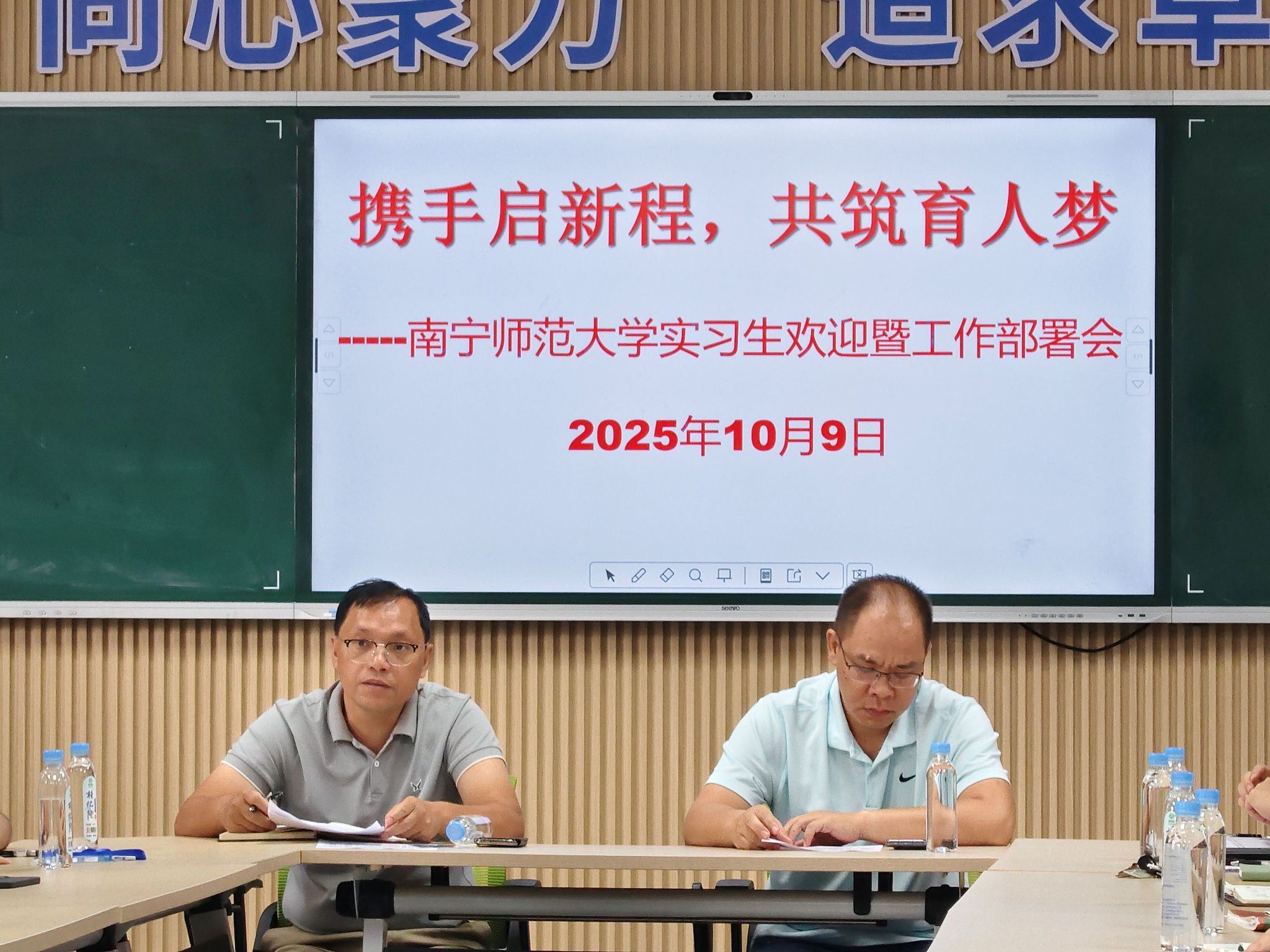 10月9日上午,南宁师范大学必威西汉姆联官网22级英语专业定向公费师范生大化实习团队在大化瑶族自治县高级中学参与了“携手启新程,共筑育人梦”---南宁师范大学实习生欢迎暨工作部署会。会议由大化瑶族自治县高级中学韦标东老师主持。大化瑶族自治县高级中学副校长黄克勋、韦金宏主任、韦德康副主任、各学科指导教师、带班指导教师及全体南宁师范大学实习生参与此次会议。