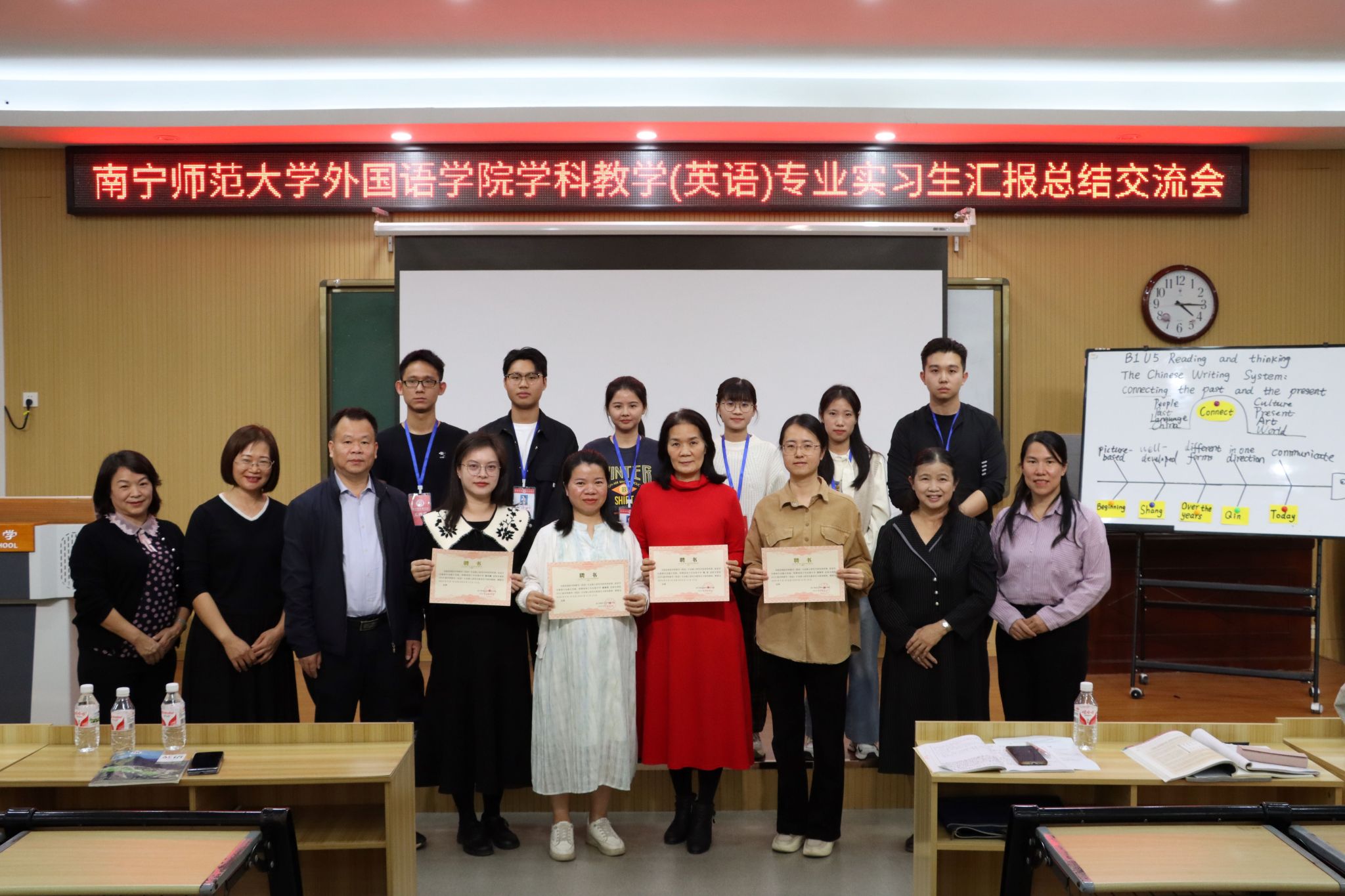 针对未来的工作,陈院长提出了殷切期望,鼓励实习生们在认真履行教学职责的同时,积极参与教育调研工作,收集并分析相关研究数据,为撰写毕业论文奠定坚实基础。本次活动不仅检验了实习生的阶段性成果,也是我院与南宁市东盟中学在深化基础教育与高等教育融合、促进英语学科教学研究合作方面所取得成效的一次重要展现。