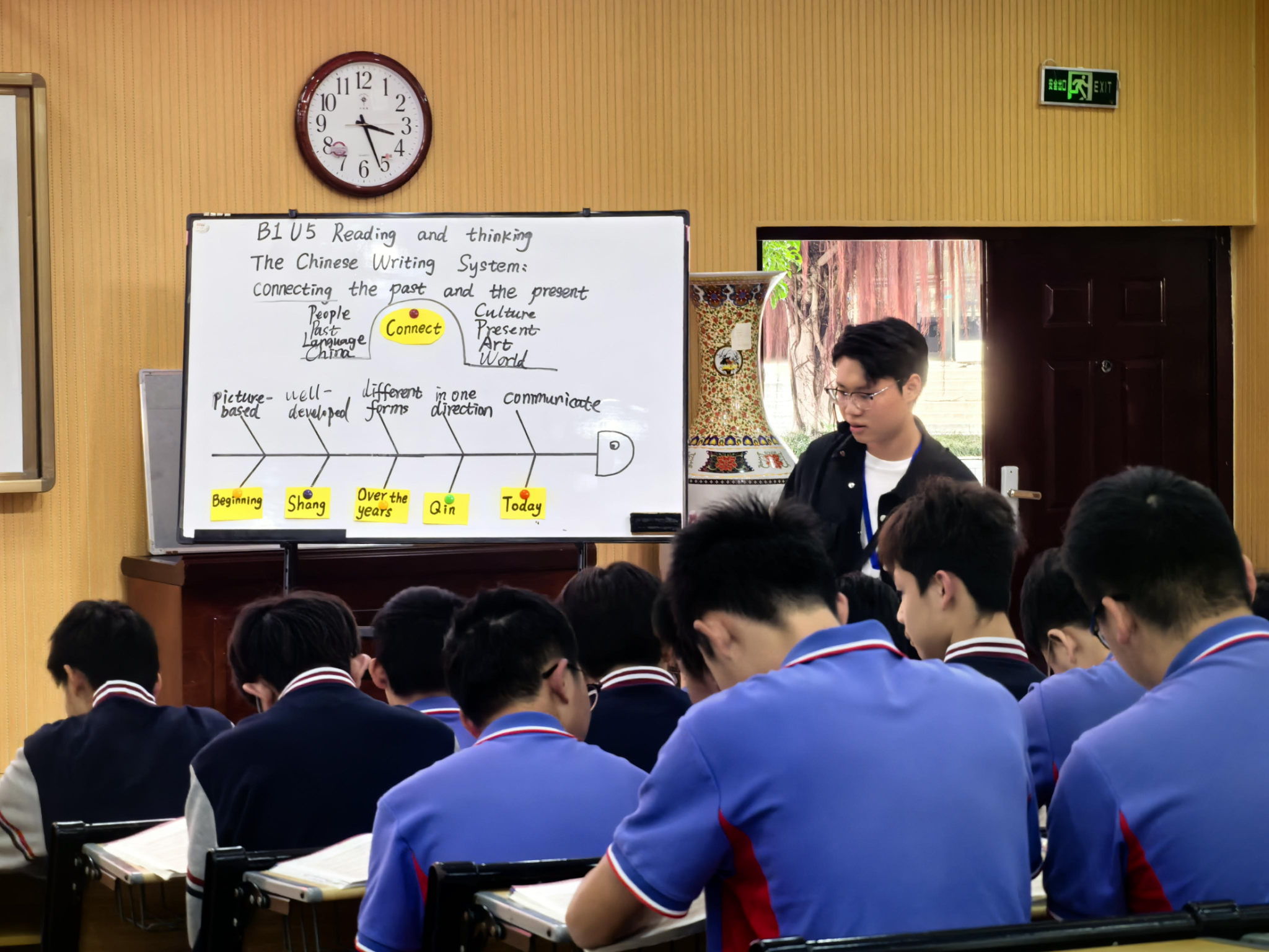 到校后,三位老师与南宁市东盟中学的英语教师团队一同观摩了实习生林益业的公开课。林益业同学的课堂条理清晰,结构设计巧妙,各环节之间过渡自然流畅。其板书形式新颖,为学生们留下了深刻印象。课堂上,师生互动频繁,学生们能紧跟教学节奏,积极参与。课后,现场老师对这堂汇报课进行了集体评课。评课过程中,实习生林益业首先从文本解读、活动设计、学法指导等方面分享了自己的备课思路。随后,南宁师范大学必威西汉姆联官网蒙岚老师、邓芳娇老师,以及南宁市东盟中学赵代玲老师、谢燕清老师,分别对林益业同学的汇报课进行了细致的点评。老师们提出了很多建设性的意见和建议,让实习生们学习到了宝贵的教学经验。