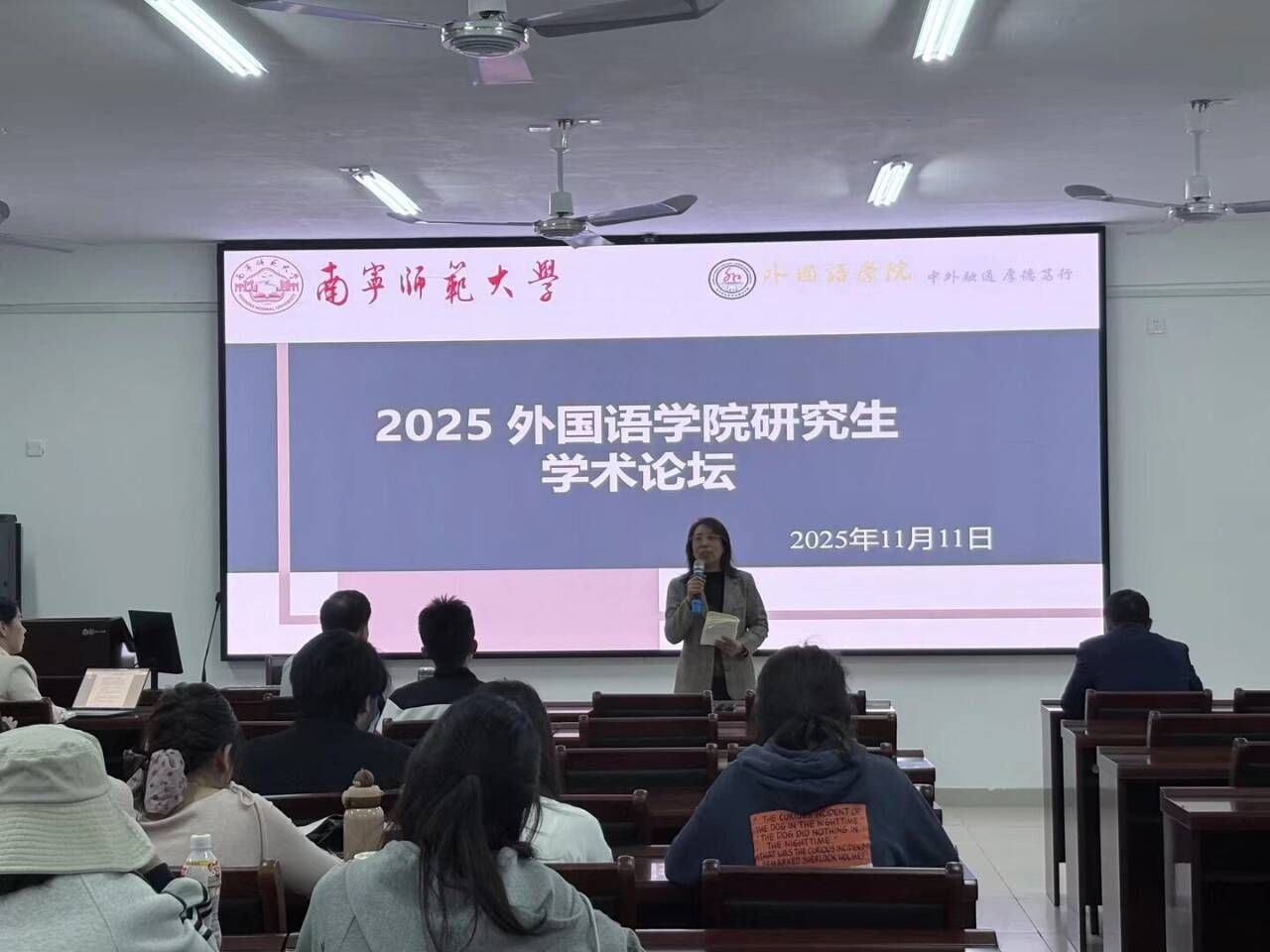 为营造浓厚学术氛围,促进研究成果分享与学术交流,必威西汉姆联官网于2025年11月11日下午在实验楼1B-515、1B-516教室举行研究生学术论坛。本次论坛分为语言学与文学两个专场,陈光伟教授、蒙岚教授、黄信教授和赵凤玉教授出席语言学专场指导,姚本标教授出席文学专场指导。共有10位研究生进行学术汇报。
