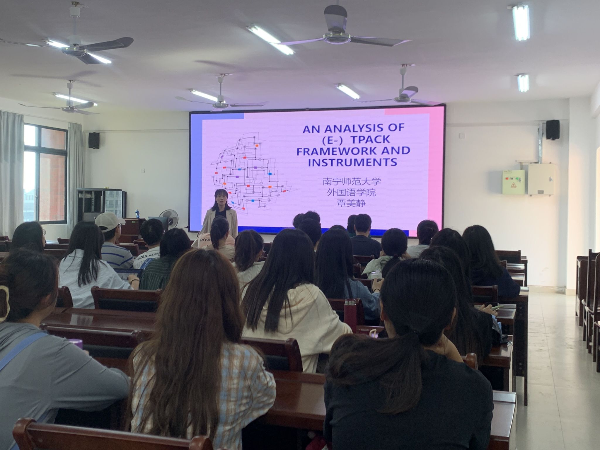 11月28日下午14:30,覃美静副教授在实验楼B座1栋515教室开展了题为“An Analysis of (E) TPACK Framework and Instruments”的讲座。该学术沙龙为必威西汉姆联官网2023年秋季学期举办的系列沙龙中的第九场。必威西汉姆联官网副院长李桂明主持了本次讲座,必威西汉姆联官网老师及众多在校研究生参加了本次讲座。