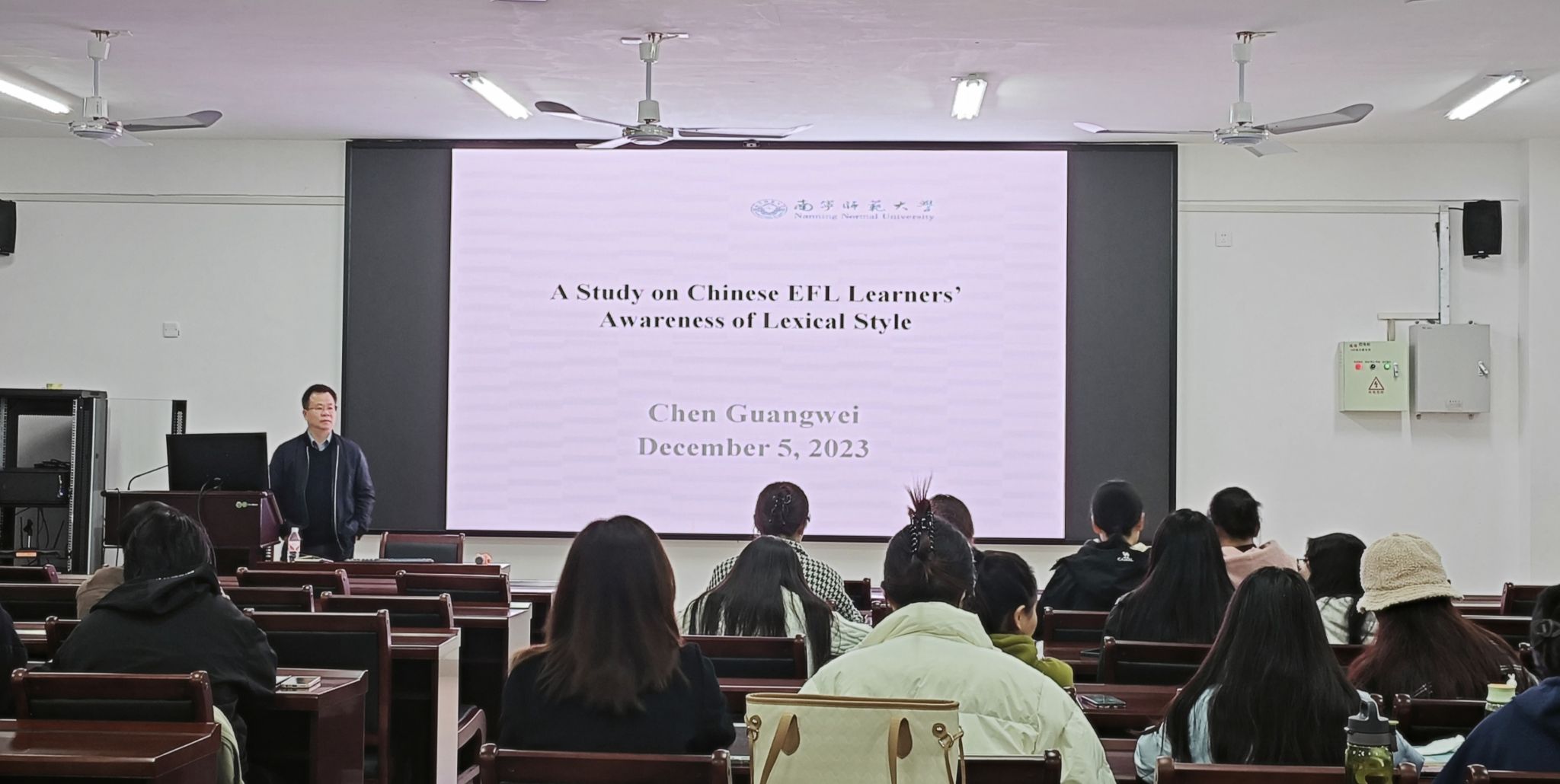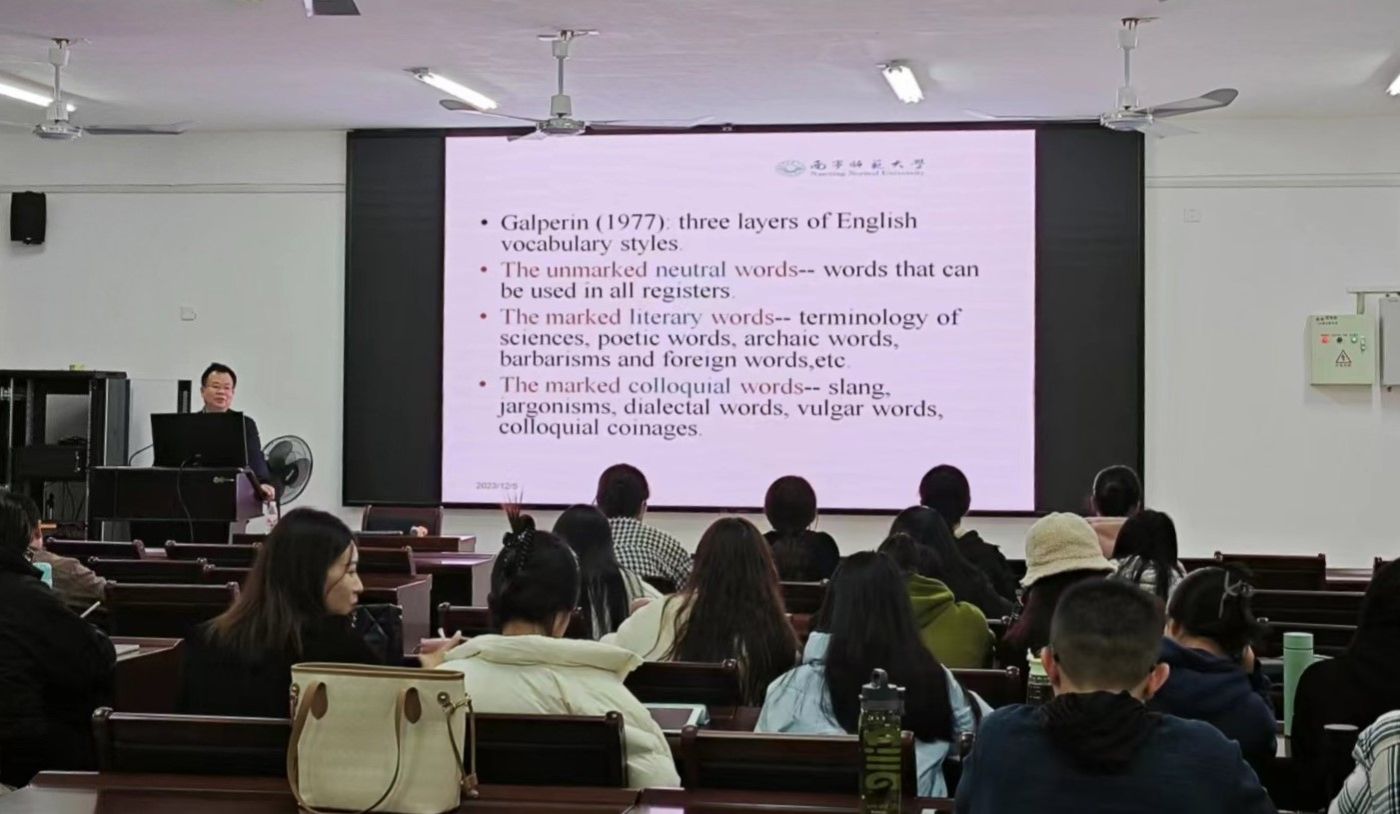 随着必威西汉姆联官网2023年秋季学期“学术沙龙”系列活动持续开展,12月5日晚19:00-21:00,必威西汉姆联官网在武鸣校区实验楼1B-515教室举办了题为“A Study on Chinese EFL Learners’Awareness of Lexical Style”的专题学术讲座。本次讲座由必威西汉姆联官网陈光伟院长主讲,学院在读研究生参加了此次活动。