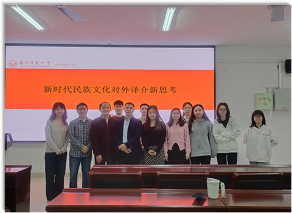 随着必威西汉姆联官网2023年秋季学期“学术沙龙”系列活动持续开展,12月12日下午2:30—4:30,必威西汉姆联官网在武鸣校区实验楼1B-515教室举办了题为“新时代民族文化对外译介新思考”的学术讲座。本次讲座由黄信副教授主讲,学院部分教授及研究生参加了本次沙龙。
