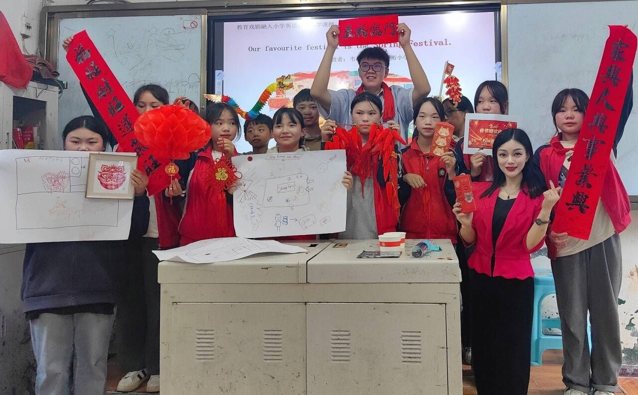 接着,来自广西壮族自治区南宁市华衡小学的科研主任韦静进行教育戏剧融入小学英语课堂教学的示范课“Our Favourite Festival is the Spring Festival”,授课对象为胡广小学六年级学生。在课上,韦静老师活泼生动的语言与动作让学生们在欢声笑语中学会了用英语去表达自己对春节的理解以及自己和家人是如何庆祝春节。通过活动,学生增强了学习英语的兴趣和用英语讲好中国故事的信心,增强了民族自豪感。