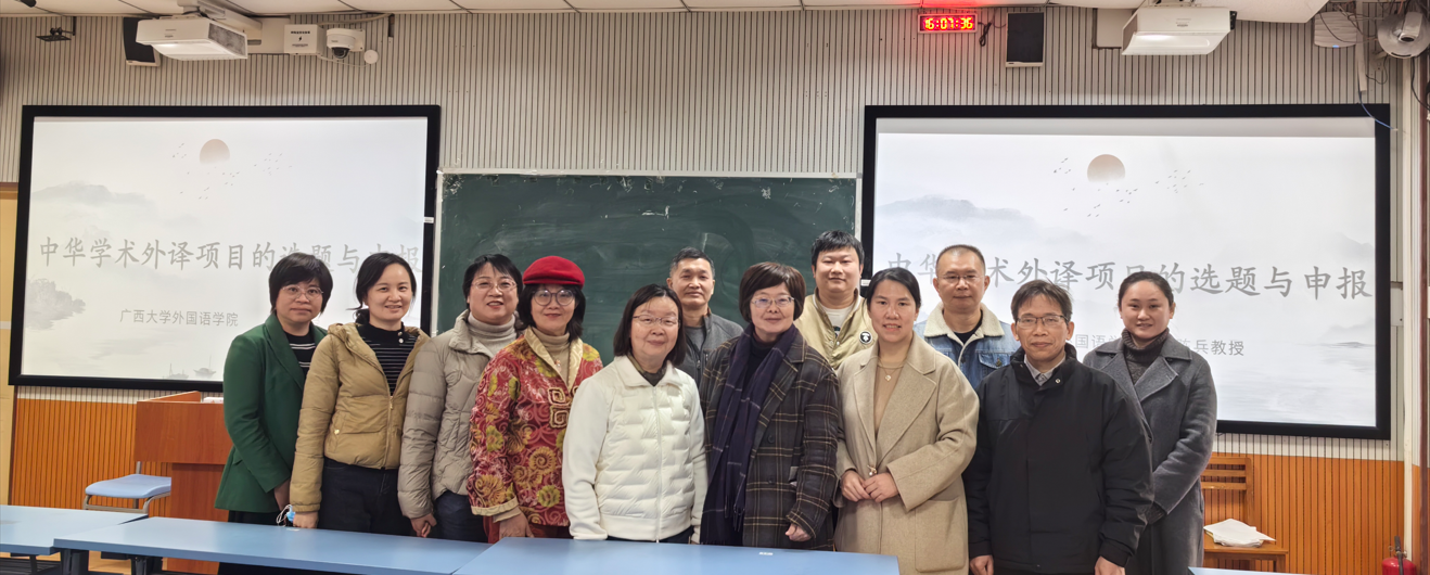 为指导教师深入了解中华学术外译项目,引导更多教师参与该项目申报,1月12日下午,必威西汉姆联官网邀请了广西大学陈兵教授在我校明秀校区文星楼215室主讲“中华学术外译项目的选题与申报”的专题报告。讲座由蒙岚副院长主持,我院和国际教育学院部分师生参加。