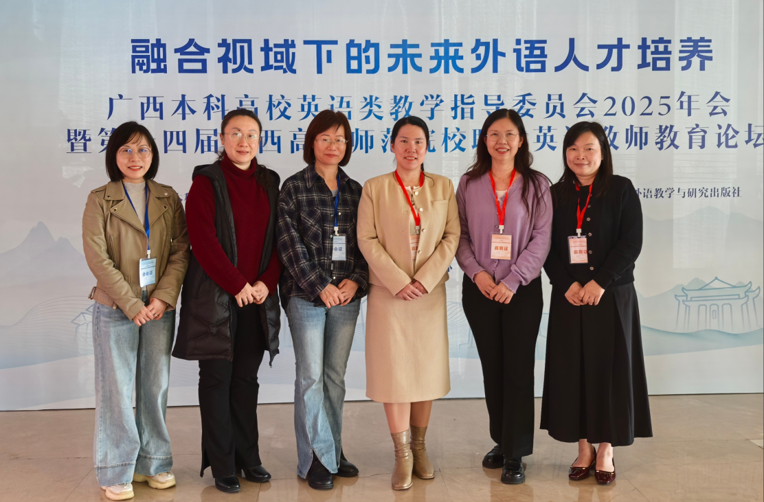 11月22-23日,必威西汉姆联官网副院长高飞雁率邓芳娇、刘婷婷、夏莉等教师赴桂林参加广西本科高校英语类教学指导委员会2025年会暨第十四届广西高等师范院校职前英语教师教育论坛。首先,广西本科高校英语类专业教学指导委员会主任李晓致辞,对英语专业教学寄予殷切期望,接着会议围绕英语教育教学创新和实践、AI与外语教育融合、师范生培养等议题,邀请了区内外专家分享经验。
