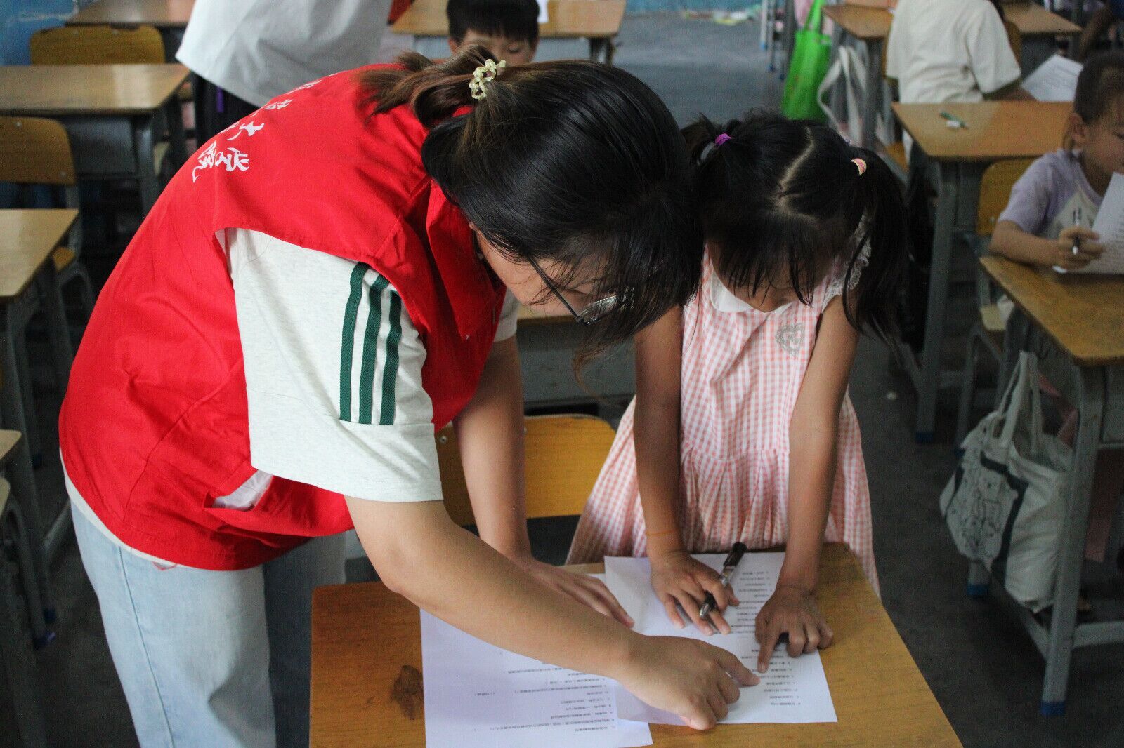 教学组志愿者精心打造了一系列特色英语课堂:双语非遗趣味课堂上,志愿者用英语生动讲述壮族文化瑰宝,孩子们在感受家乡文化魅力的同时扩充英语词汇量;英语戏剧鉴赏课热闹非凡,孩子们用稚嫩却认真的英语台词演绎经典剧目片段,既锻炼了口语表达能力,也培养了团队协作精神;趣味横生的游园会让英语学习不再枯燥,极大激发了孩子们的学习热情,真正实现寓教于乐。文体组志愿者策划的活动同样精彩纷呈:趣味运动会上,跳大绳等项目让孩子们在运动中释放活力,培养拼搏精神和集体荣誉感;文艺汇演筹备期间,志愿者从简单动作指导到整体舞台呈现,带领孩子们排练歌舞节目,让他们从羞涩腼腆逐渐变得自信大方。这些活动不仅丰富了孩子们的课余生活,更让他们在学习与活力中收获知识、展现自我,实现全面成长。