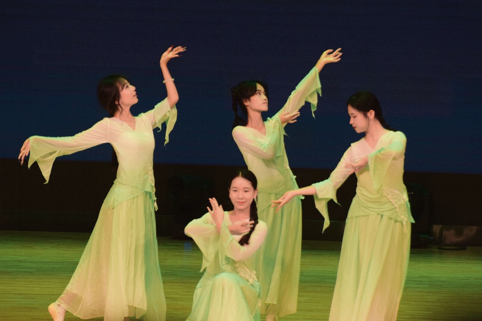 成果展在热情洋溢的开场舞《我最红》中拉开帷幕,瞬间点燃现场气氛。随后,FLD艺术团执行团长上台发言,表达了对2025级新生的热烈欢迎和对艺术团未来的美好展望。整个展演中,声乐组的表演精彩纷呈,《你就不要想起我》《你不知道的事》《暗号》《行走的鱼》《至少还有你》等独唱歌曲悉数唱响,歌声动人,情感真挚。舞蹈组则呈现了一场风格多样的视觉盛宴,从古风柔美的《鸳鸯戏》到动感十足的《Strategy》,再到温情演绎的《双舞拾光》,充分展现了外院学子的艺术才华与青春朝气。此外,主持组带来的朗诵《青春的疆域》声情并茂,激励同学们不负韶华、勇敢追梦。
