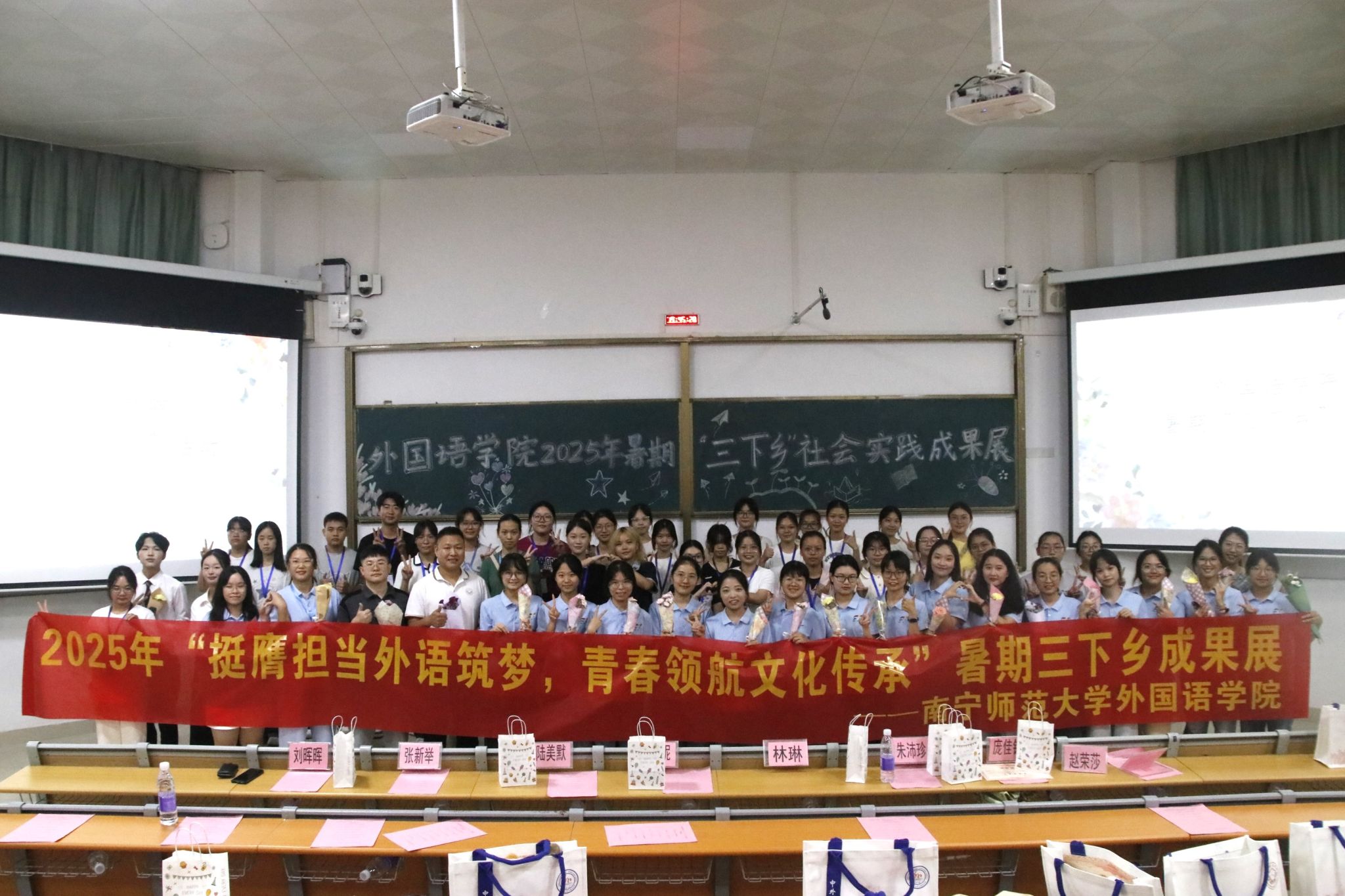 为提升学生社会实践能力,深化对“三下乡”活动的理解,必威西汉姆联官网于10月14日在武鸣校区2号教学楼209教室举办以“挺膺担当外语筑梦,青春领航文化传承”为主题的2025年暑期“三下乡”社会实践活动成果展。参加本次活动的有必威西汉姆联官网党委副书记刘晖晖、学工办张新举老师、院团委学生会团副主席团成员、武鸣校区各二级学院学生代表,以及“三下乡”志愿者和2023级、2024级、2025级部分学生。