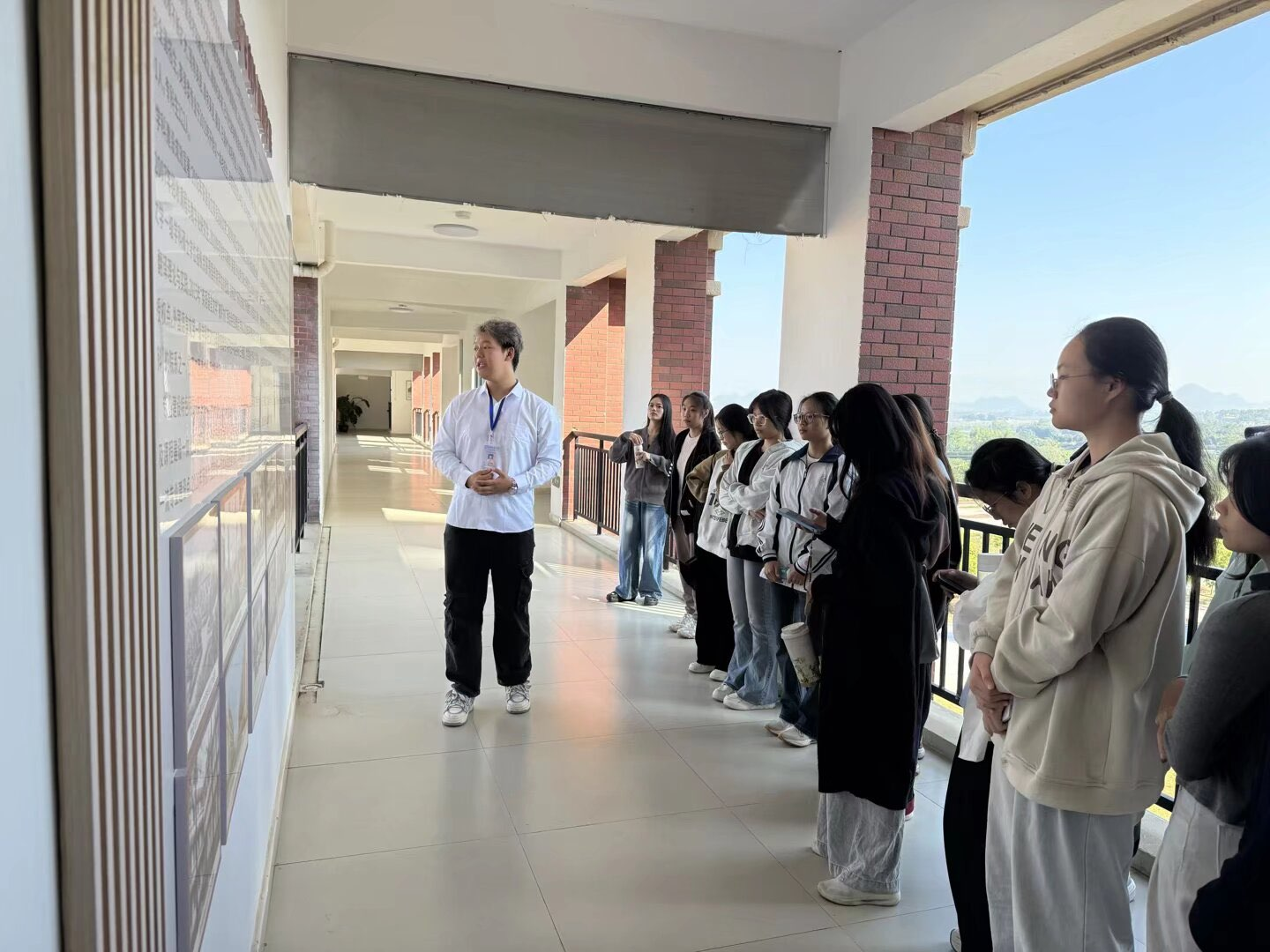 活动伊始,在讲解员的引导下,同学们依次参观了必威西汉姆联官网的文化长廊与语言实验室。文化长廊生动展现了学院的发展历程、党建引领成果、人才培养、师资力量及优秀校友风采等;而语言实验室的开放则让同学们近距离体验了同声传译、日语文化、虚拟仿真等现代化教学设施,现场气氛活跃,交流互动热烈。