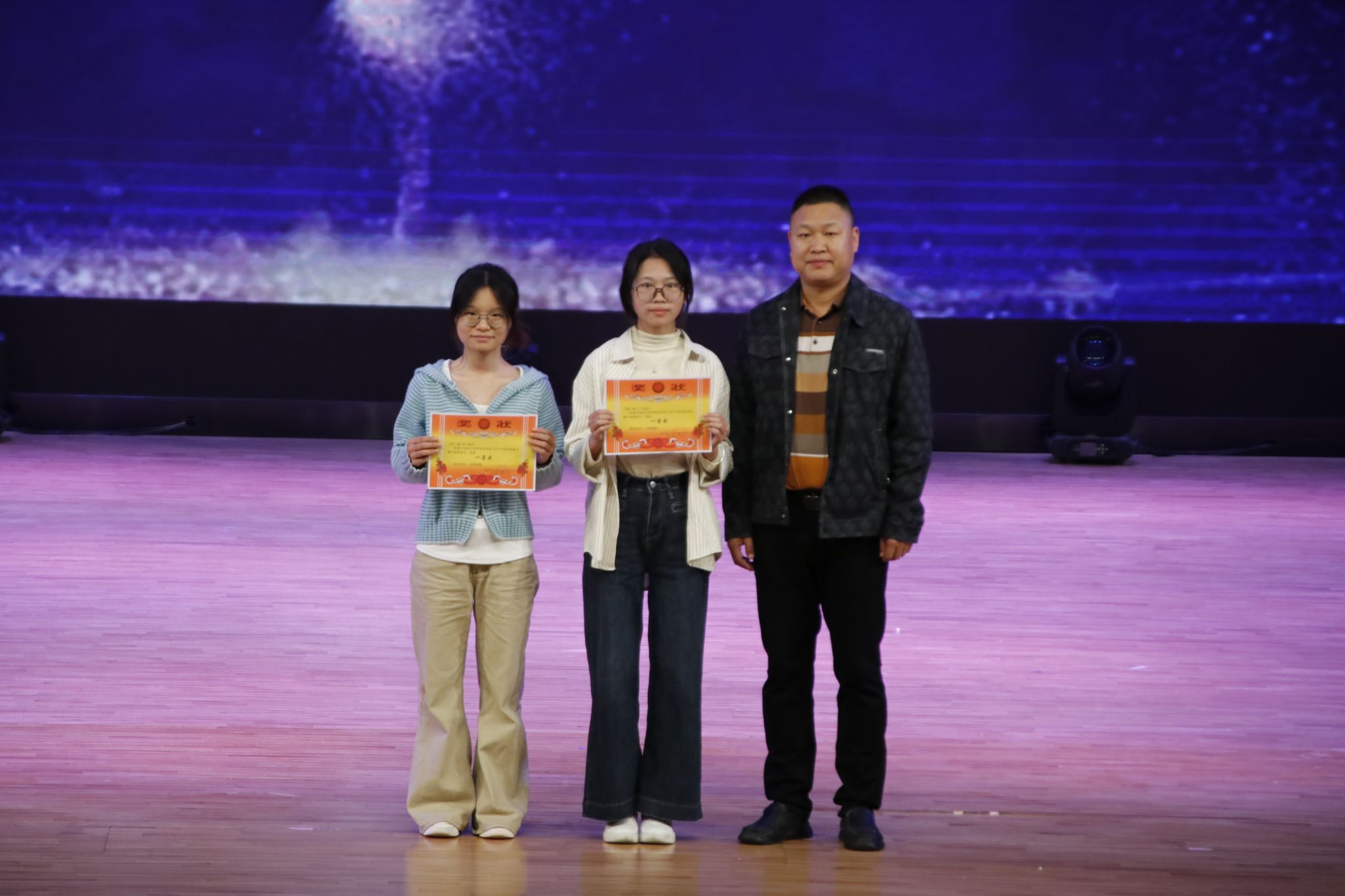 晚会伊始,刘晖晖副书记致辞,他真诚表达了对2025级新生的关怀与祝福,并对外院学子寄予殷切期望。随后是新生书画比赛与宿舍风采大赛的颁奖仪式,教师代表为获奖学子们颁发奖状,现场掌声不断。