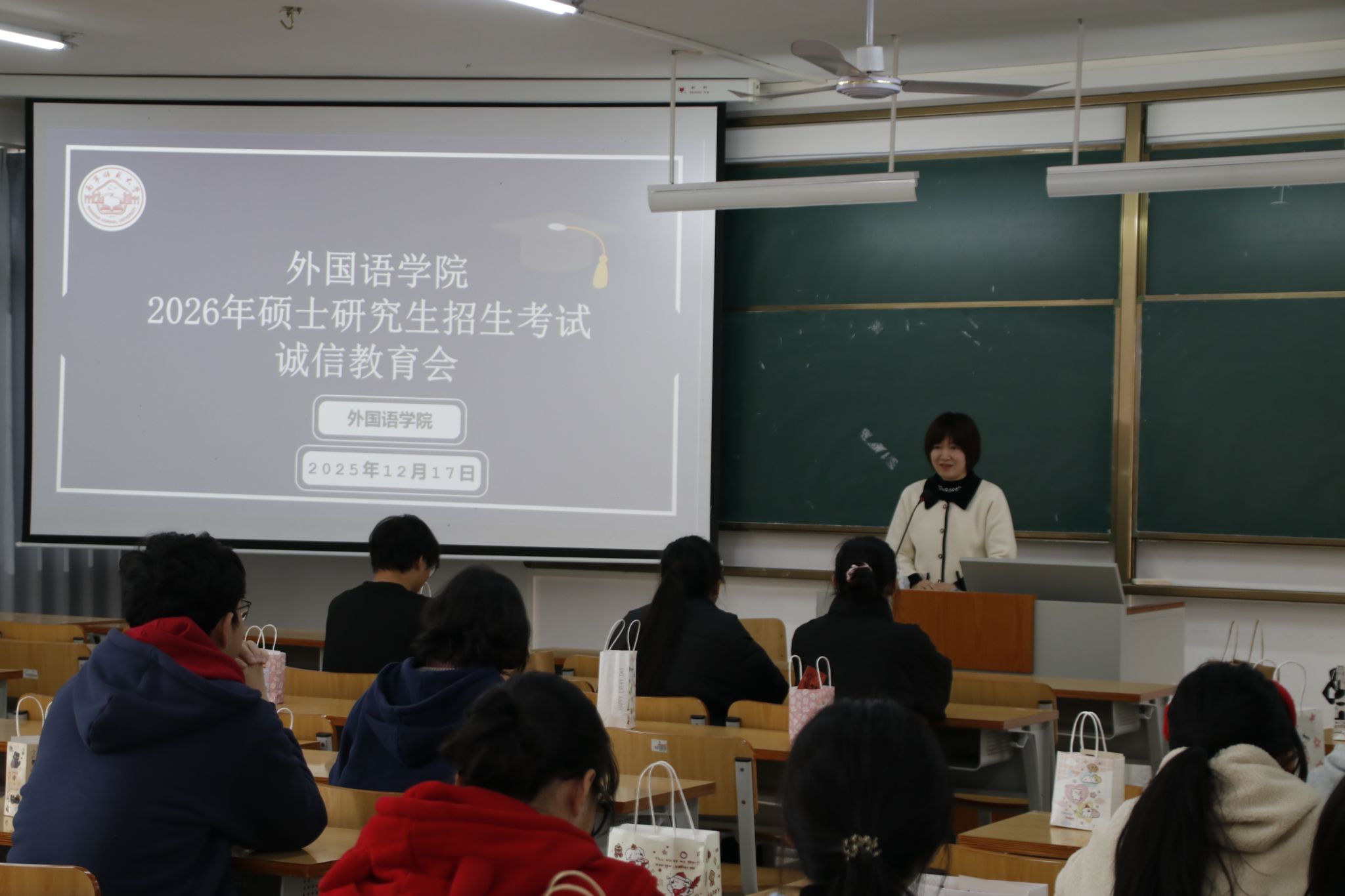 为深入推进诚信教育,营造风清气正的考试环境,保障2026年全国硕士研究生招生考试平稳有序进行,12月17日中午,必威西汉姆联官网在武鸣校区实验楼2C-203教室组织召开了考研诚信教育暨考前动员大会。学院党委副书记邱晖、学工办张新举老师出席会议,必威西汉姆联官网全体考研学子参会。