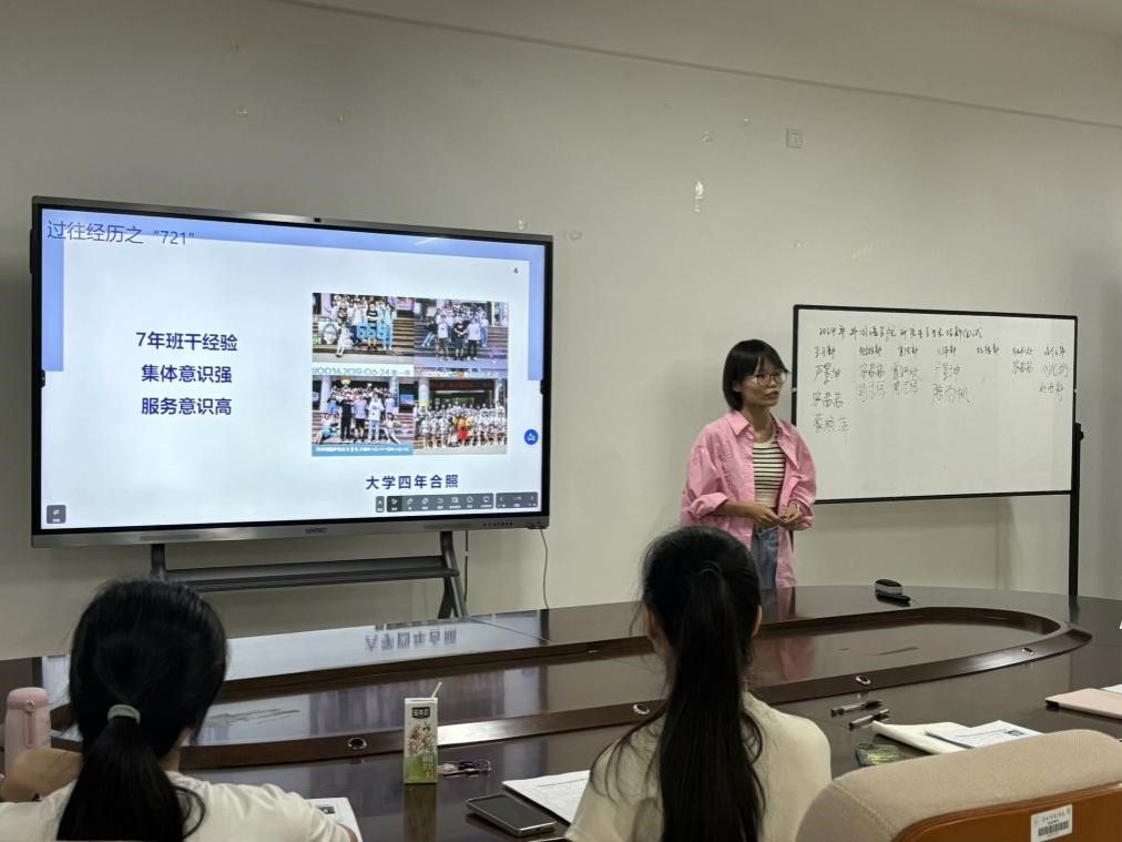 在主持人的引导下,前来面试的新生们依次走向台前。他们热情饱满,态度积极,落落大方地介绍自己的意向部门以及个人所具备的独特优势。现场气氛热烈而紧张,我们欣喜地发现众多优秀的新生力量,他们有的具备出色的组织协调能力,有的拥有扎实的专业知识,还有的在能力展示环节大放异彩。