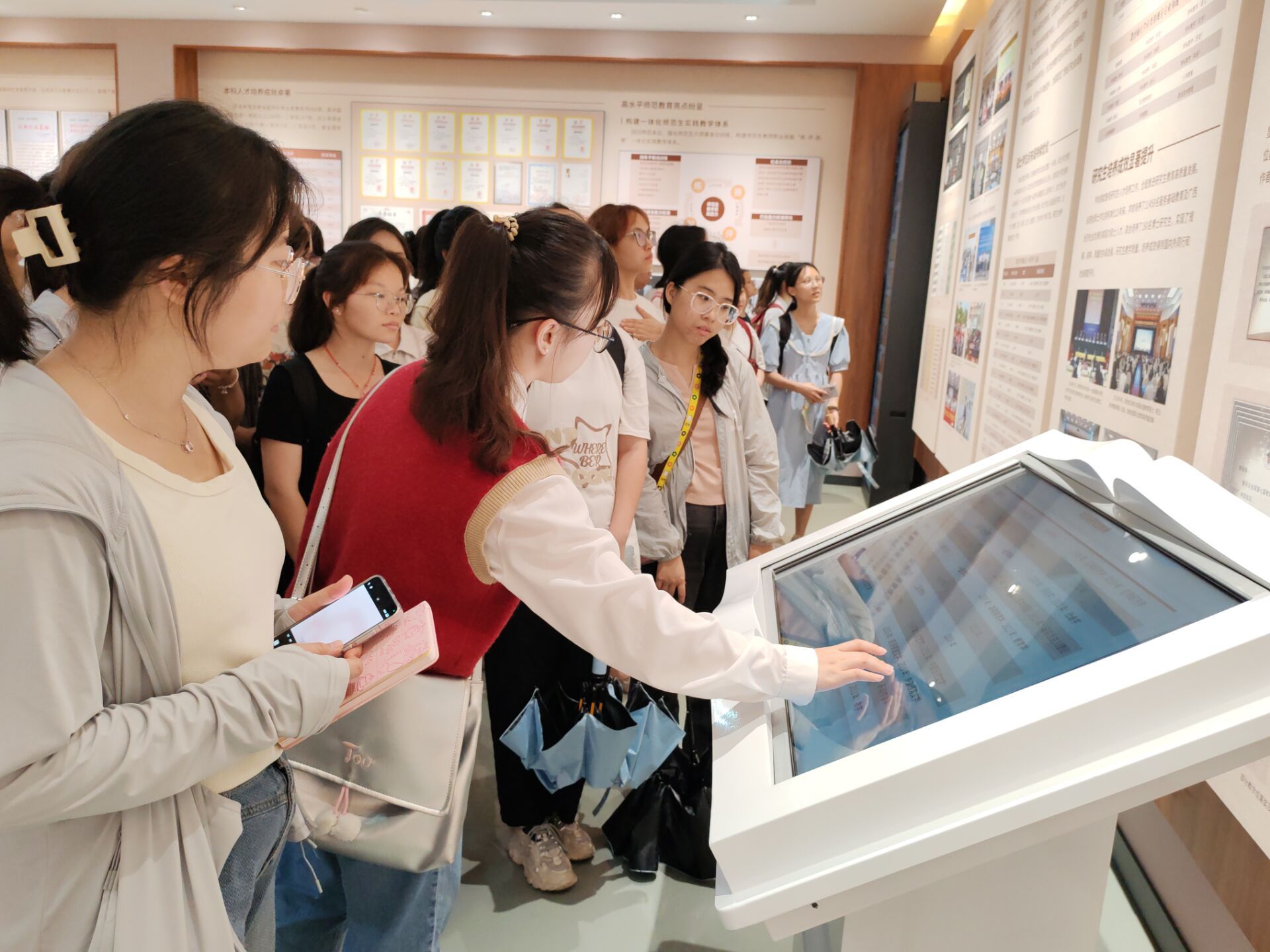 入党积极分子们在讲解员的带领下参观了七秩风华展厅、春华秋实展厅和特色专题展厅,了解到了学校七十年的发展历程,目睹了学校在人才培养、科学研究、社会服务、文化传承创新、国际交流合作等方面取得的突出成果。观看结束后,大家纷纷表示,对学校七十年来所取得的成就感到骄傲与自豪,对学校未来的发展充满信心和力量,也表示要坚守“德才并育 知行合一”的初心,在青春的赛道上奋勇争先,谱写新时代大学生的绚丽篇章。