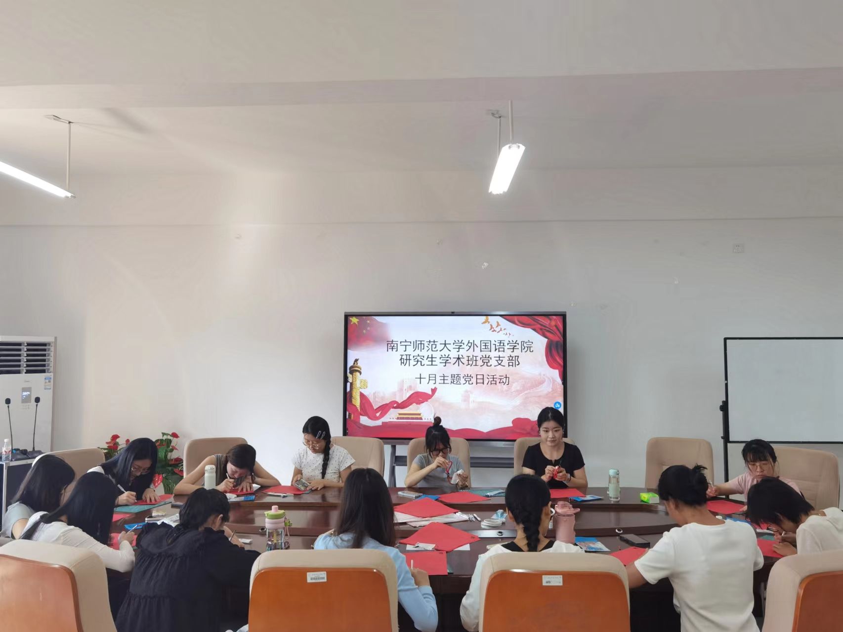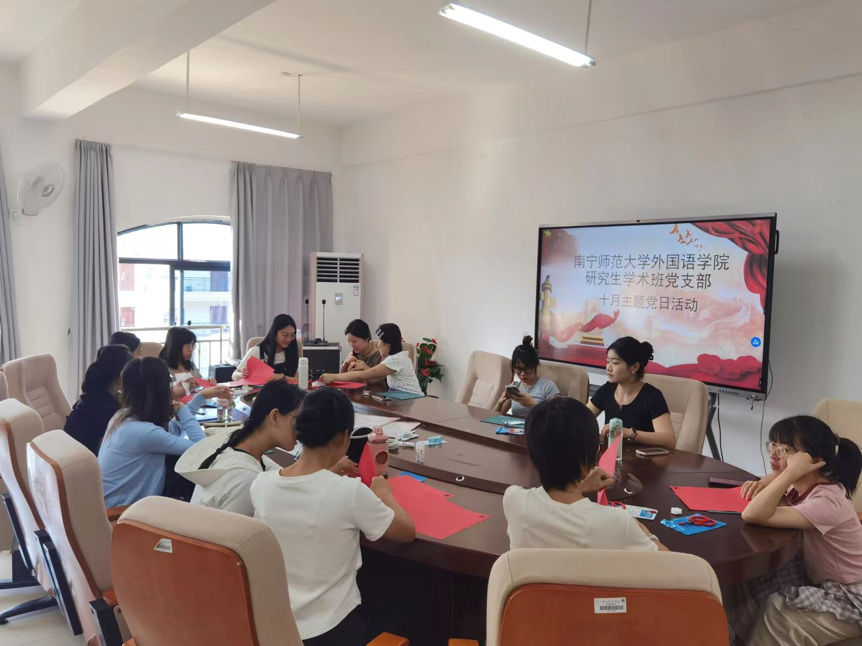 为庆祝中华人民共和国成立75周年,弘扬和传承中华优秀传统文化,10月9日上午,必威西汉姆联官网研究生学术班党支部在实验楼1B614党员活动室举行“巧手裁剪庆华诞,不忘担当颂党恩”主题党日活动,此次活动由支部书记马旭冉主持,学术班党支部各位党员同志参与。