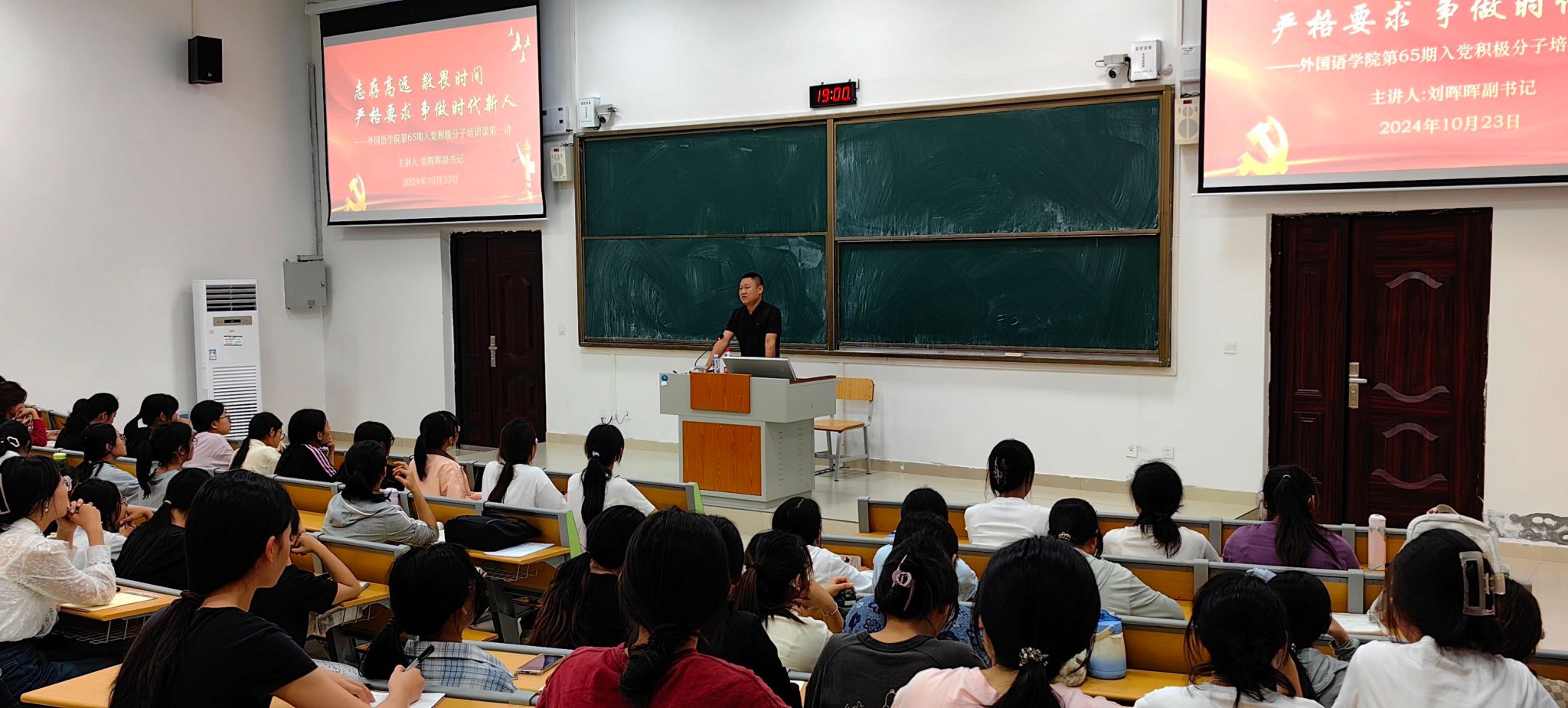 10月23日晚,必威西汉姆联官网党委在实验楼1B-113举办了第65期入党积极分子培训会第一讲。本次培训会主题为“志存高远,敬畏时间,严格要求,争做时代新人”,学院党委副书记刘晖晖主讲,本学期认定的125名入党积极分子参加了此次培训。
