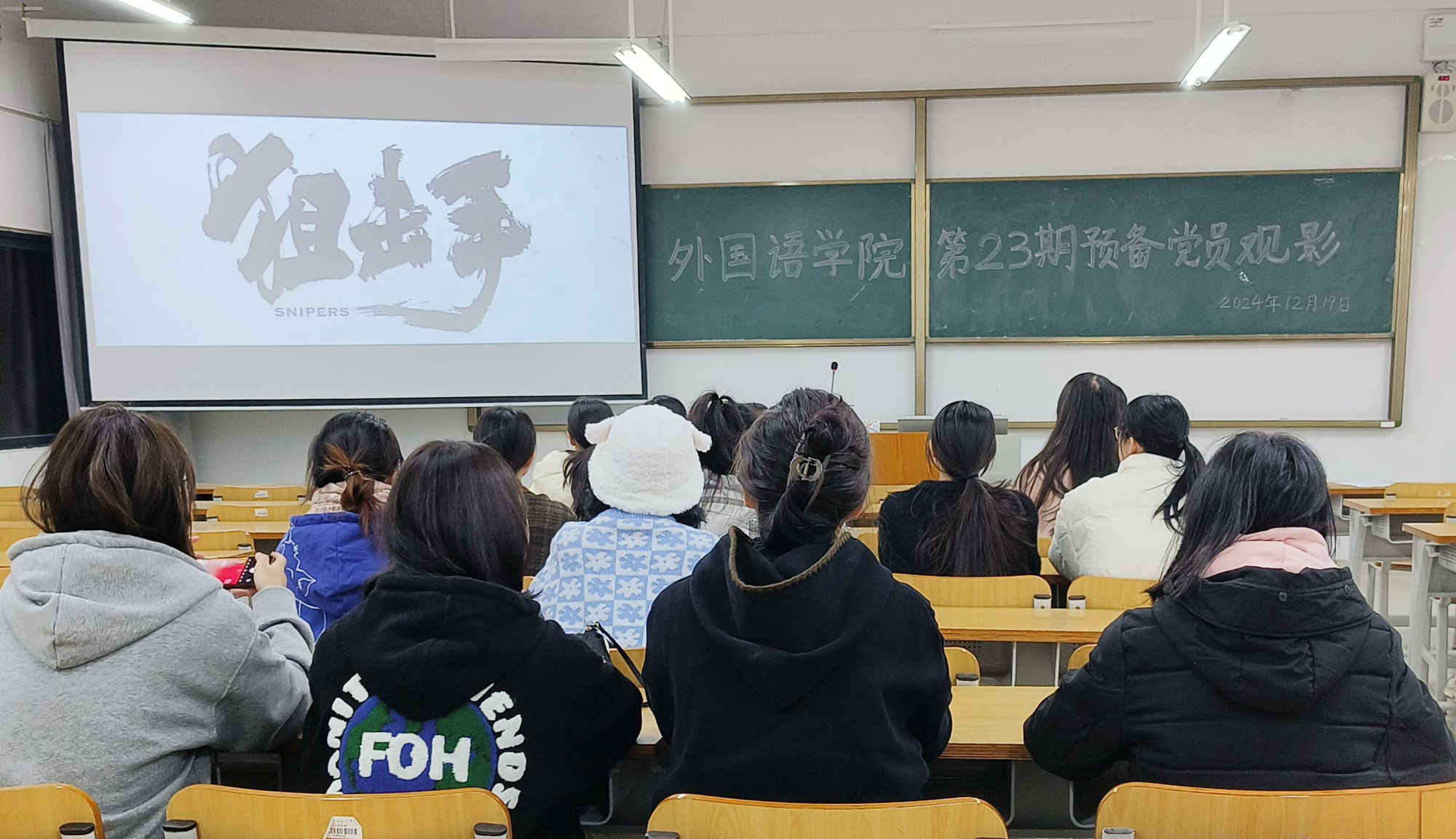 本次观看的影片为《狙击手》,这部影片以抗美援朝战争中鲜为人知却意义重大的“冷枪冷炮运动”为背景,讲述了狙击手五班战士在敌我军备力量悬殊的境地下,与美军精英狙击小队展开殊死较量的故事。影片中,志愿军战士们展现了毫不退缩、浴血奋战的大无畏革命精神,深深震撼了在场的每一位预备党员。