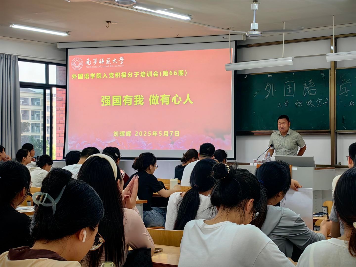 5月7日晚,必威西汉姆联官网党委在实验2C-201举办了第66期入党积极分子培训会第二讲。本次培训会主题为“强国有我,做有心人”,由必威西汉姆联官网党委刘晖晖副书记主讲,本学期认定的46名入党积极分子参加了此次培训。