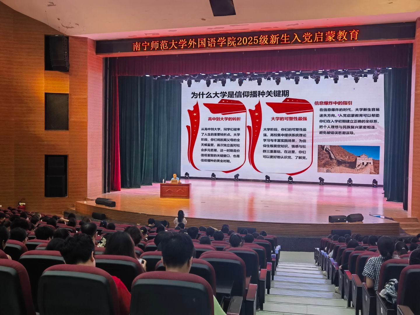 9月18日下午,必威西汉姆联官网党委在武鸣校区音舞楼1号报告厅开展了2025级本科新生入党启蒙教育。本次入党启蒙教育由必威西汉姆联官网吴世全老师主讲,必威西汉姆联官网2025级全体本科新生参与了此次入党启蒙教育活动。