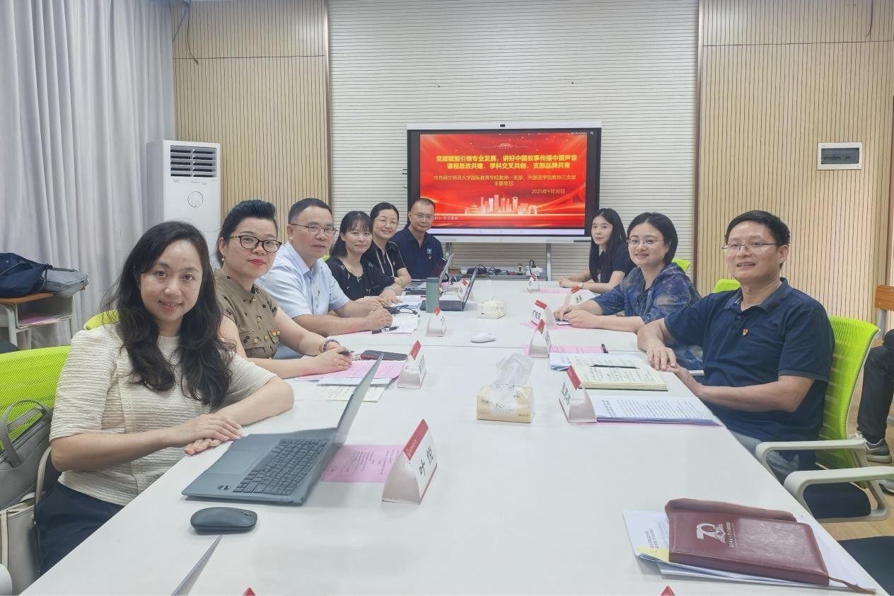 为深化课程思政建设,探索学科交叉融合,强化基层党组织战斗堡垒作用,9月30日,必威西汉姆联官网教工第三支部与国际教育学院教师第一支部联合举办了以“党建赋能引领专业发展,讲好中国故事传播中国声音”为主题的联合主题党日活动。本次活动聚焦“课程思政共建、学科交叉共创、支部品牌共育”,通过专题报告、教学示范与深度研讨,为党建引领下的专业发展与人才培养注入了新动能。