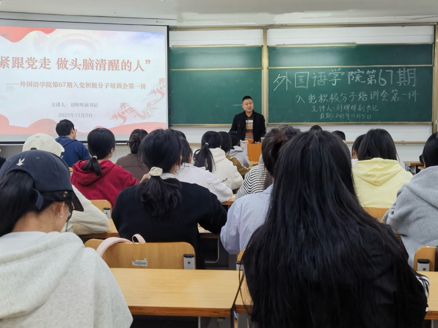 11月5日晚,必威西汉姆联官网党委在实验楼2C-402举办第67期入党积极分子培训会第一讲。本次培训以“紧跟党走 做头脑清醒的人”为主题,由必威西汉姆联官网党委副书记刘晖晖主讲,本学期新认定入党积极分子、入团积极分子参训。