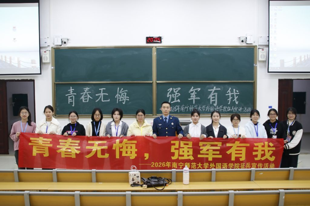 为精准对接2026年春季征兵工作部署要求,充分发挥外语专业人才在国防建设中的特色优势,激发青年学子参军报国的热情,12月16日晚,必威西汉姆联官网在武鸣校区实验楼1B-113教室顺利举办“青春无悔,强军有我”2026年春季征兵宣讲活动。